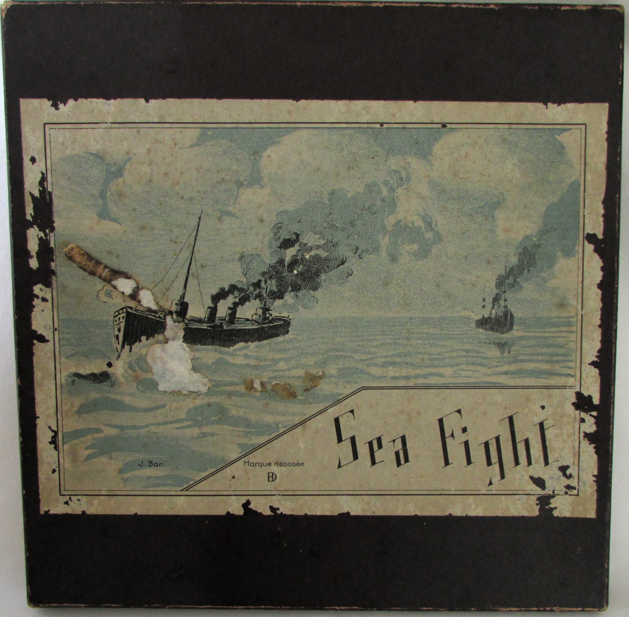 Probably the inspiration for Milton Bradley's "Battleship" game, with all playing pieces and instructions (in French). As found original and rare board game.