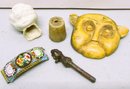 Including 2 small Mochaware pieces, dolls porcelain head, micro-mosaic buckle part and more.