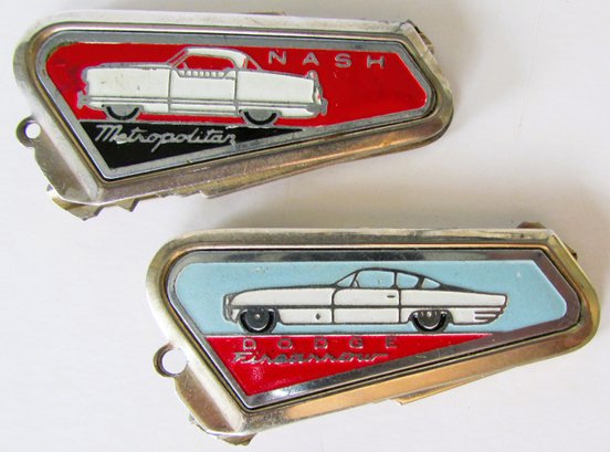 Enameled Key holders advertising the Dodge "FireArrow" and the Nash "Metropolitan" circa 1950's. Both with cut keys.