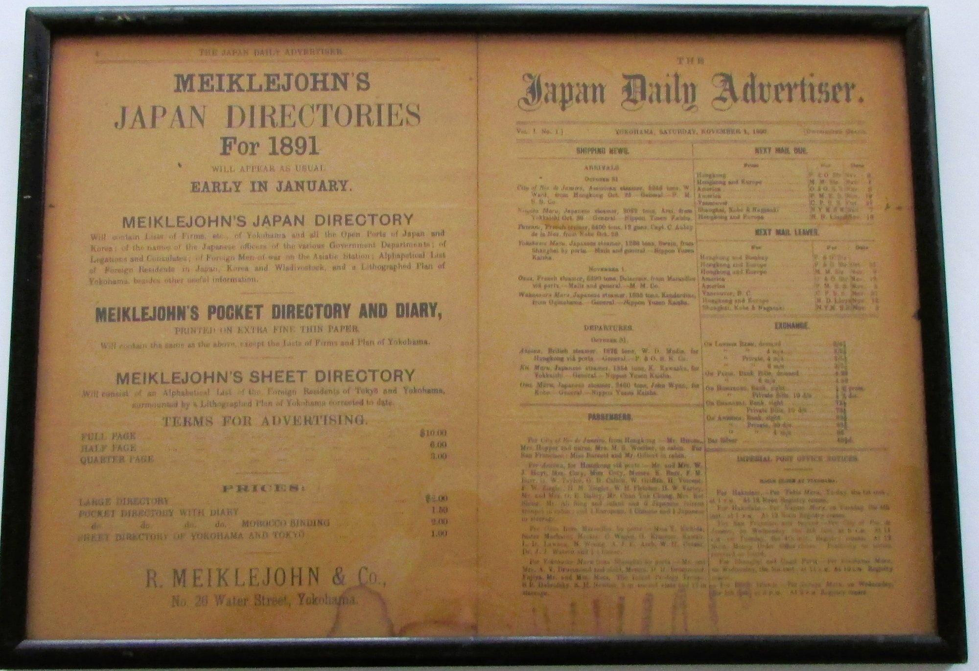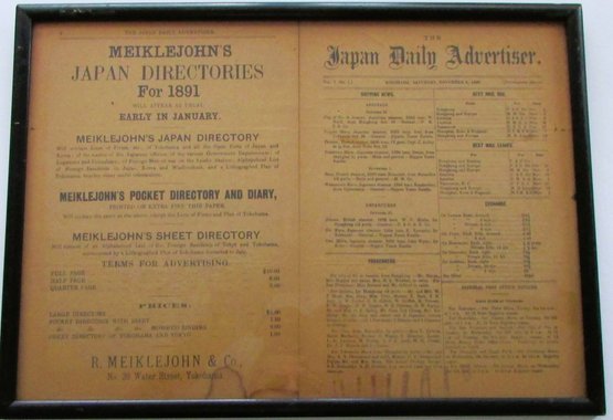 In double sided frame, featuring news, advertisements and printed November 1, 1890.