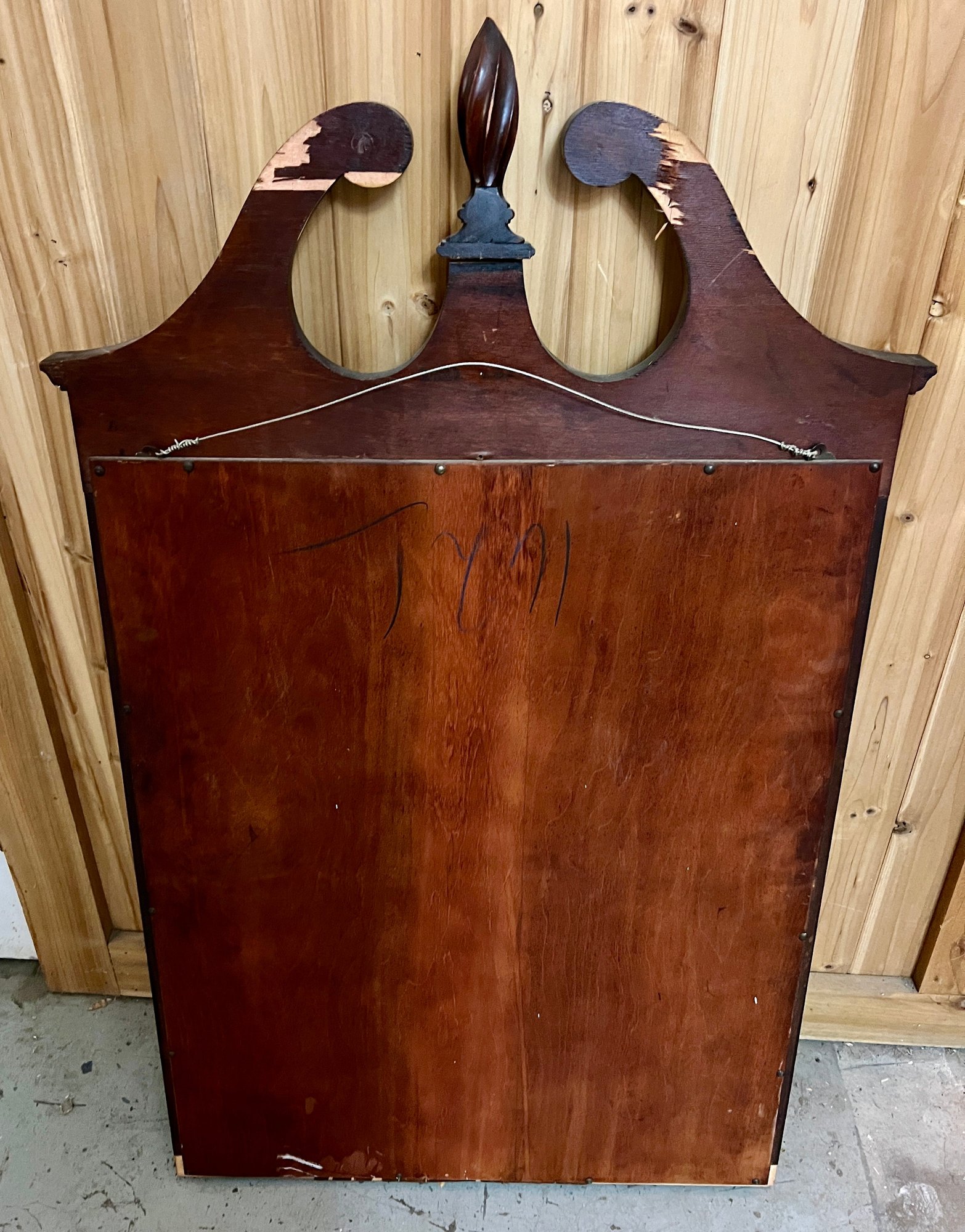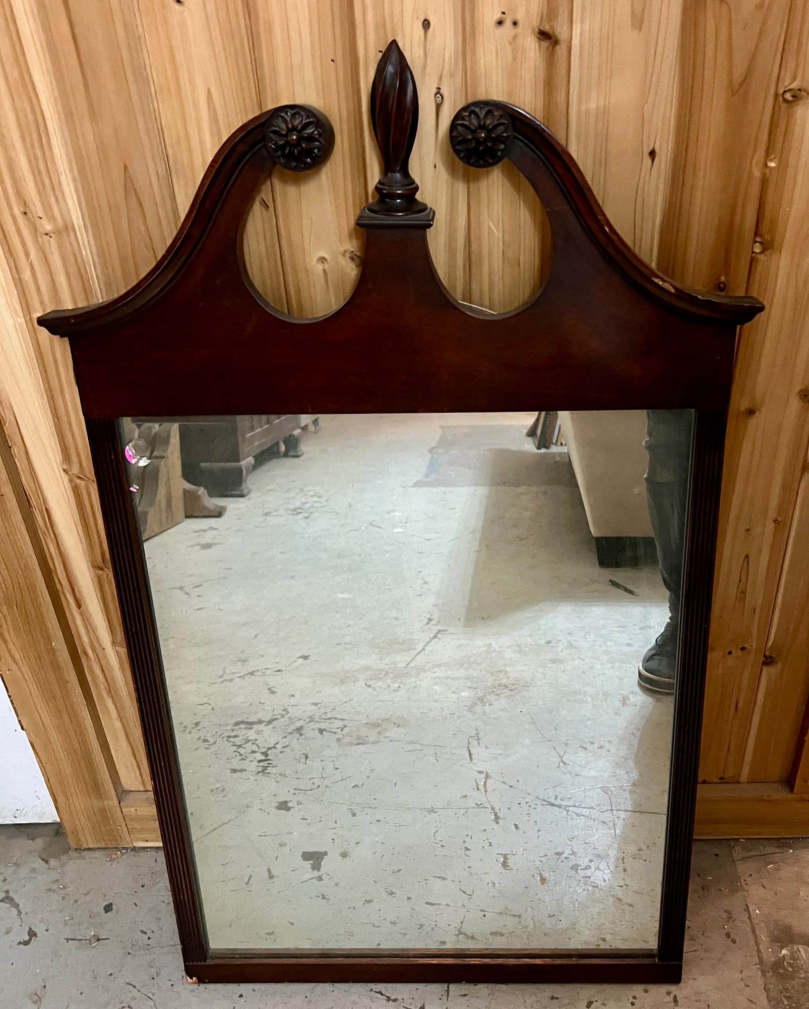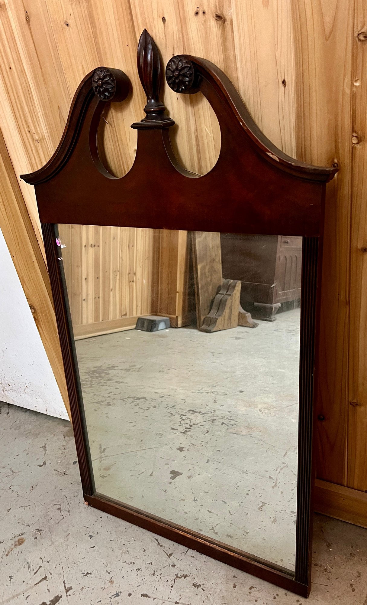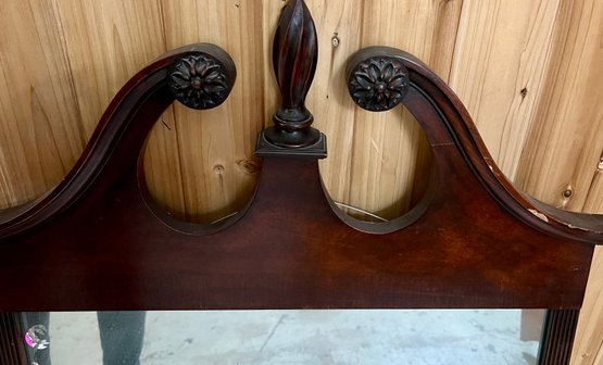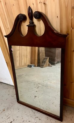 Chippendale style wall mirror in decorative wooden frame. Top wooden finial is a bit loose.