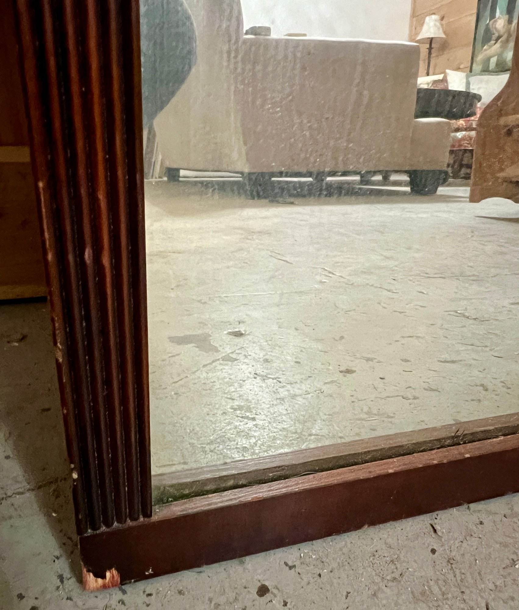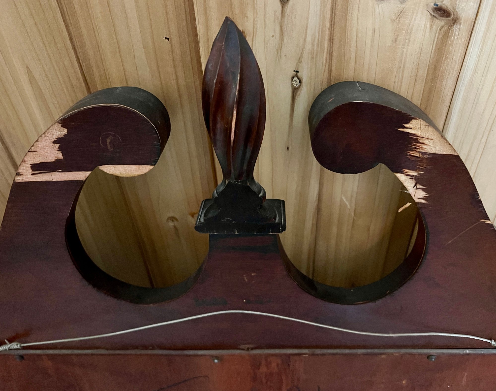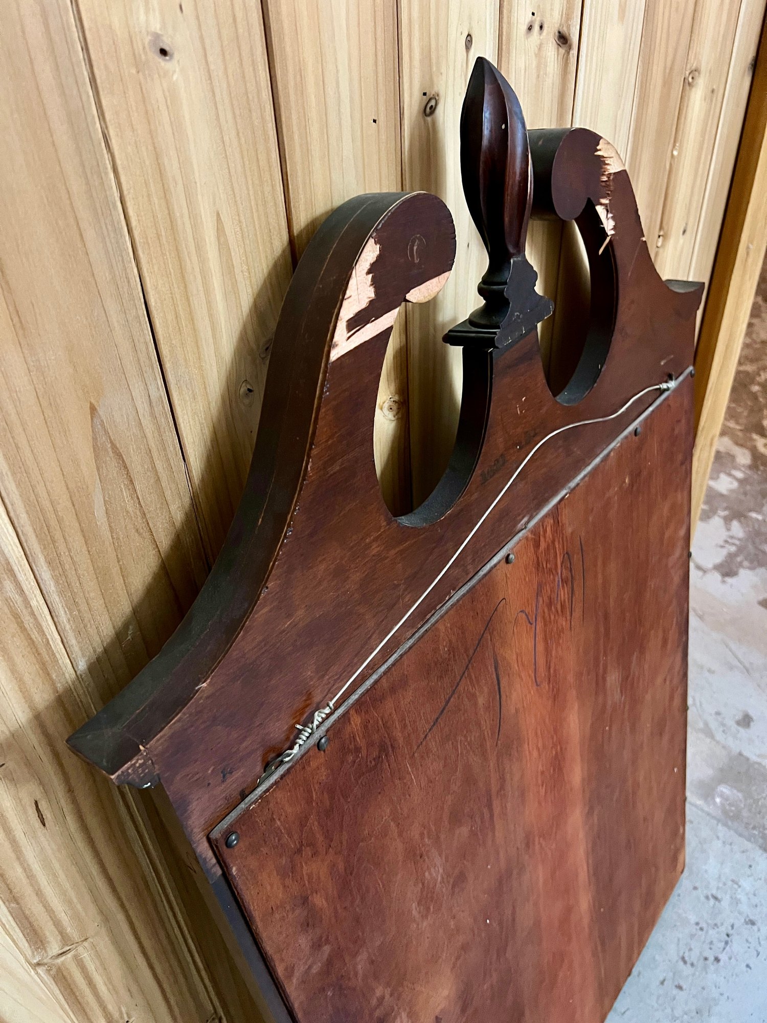 Chippendale style wall mirror in decorative wooden frame. Top wooden finial is a bit loose.