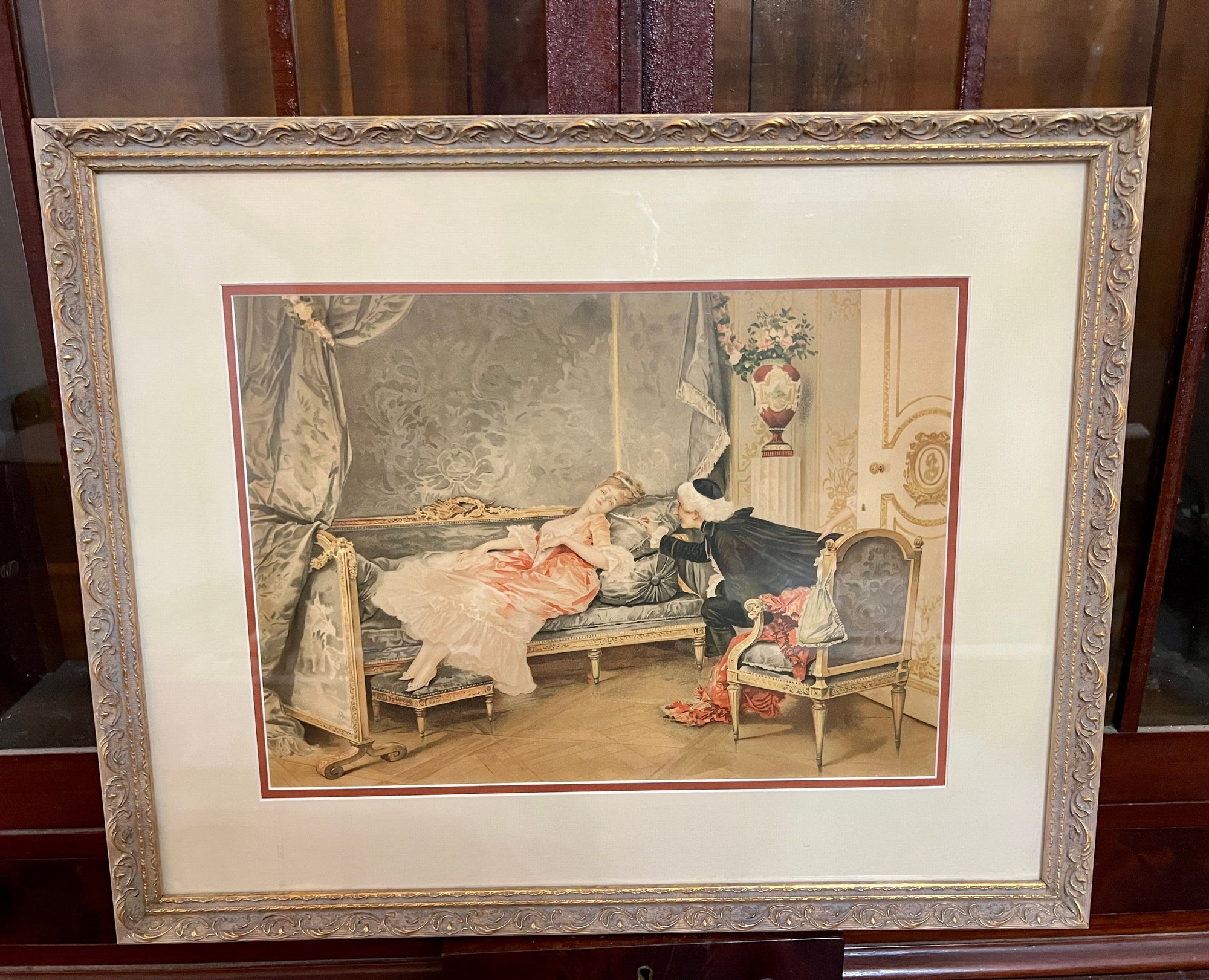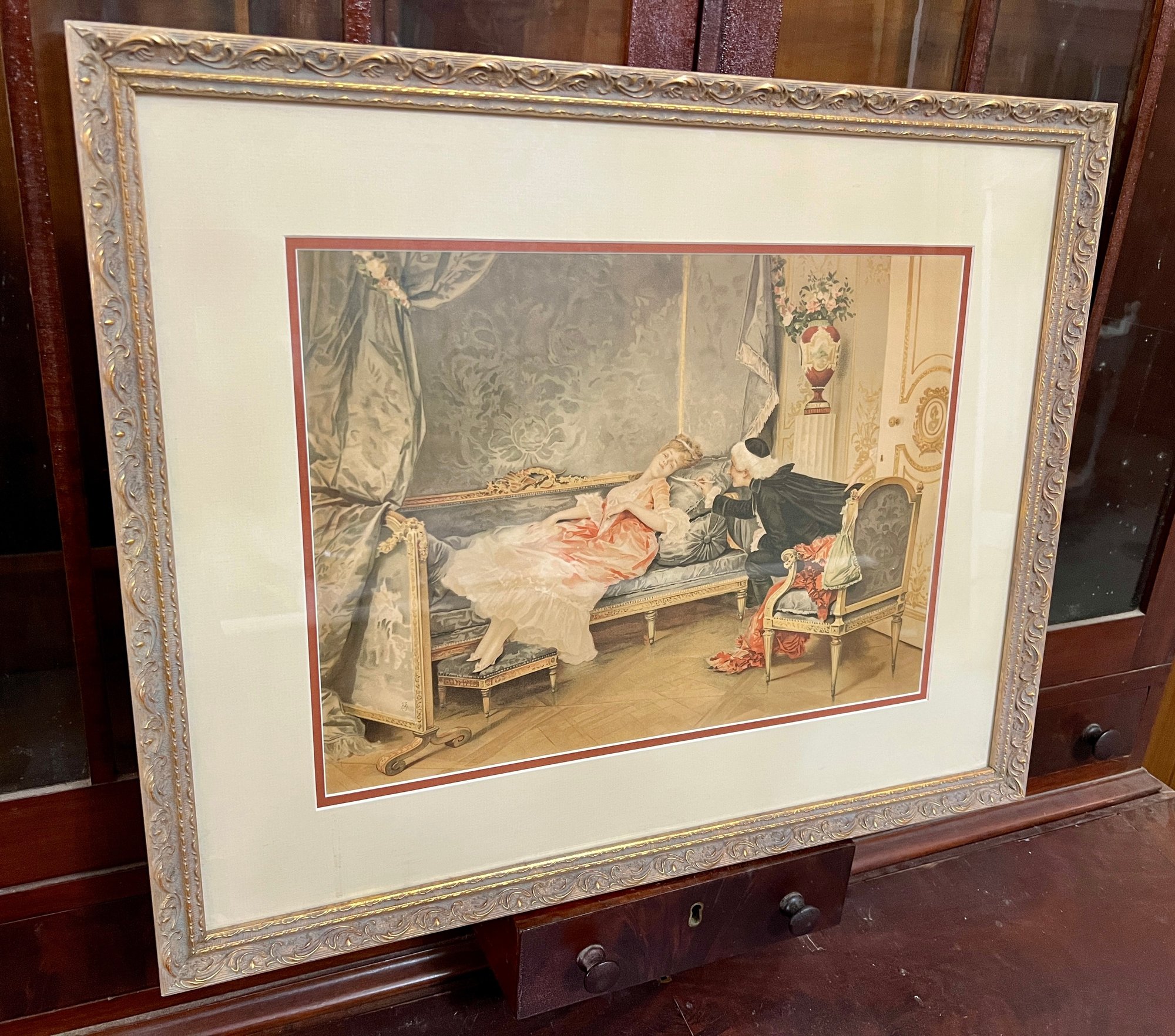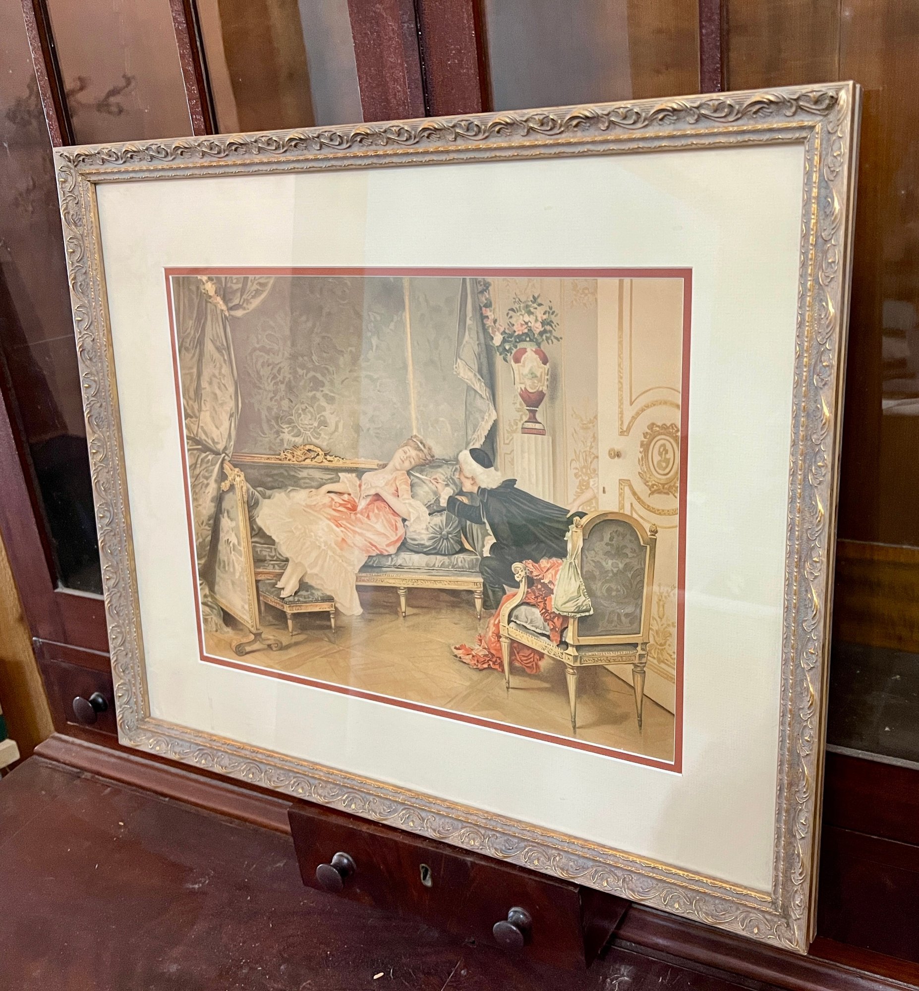 Framed print of a painting in French rococo style.