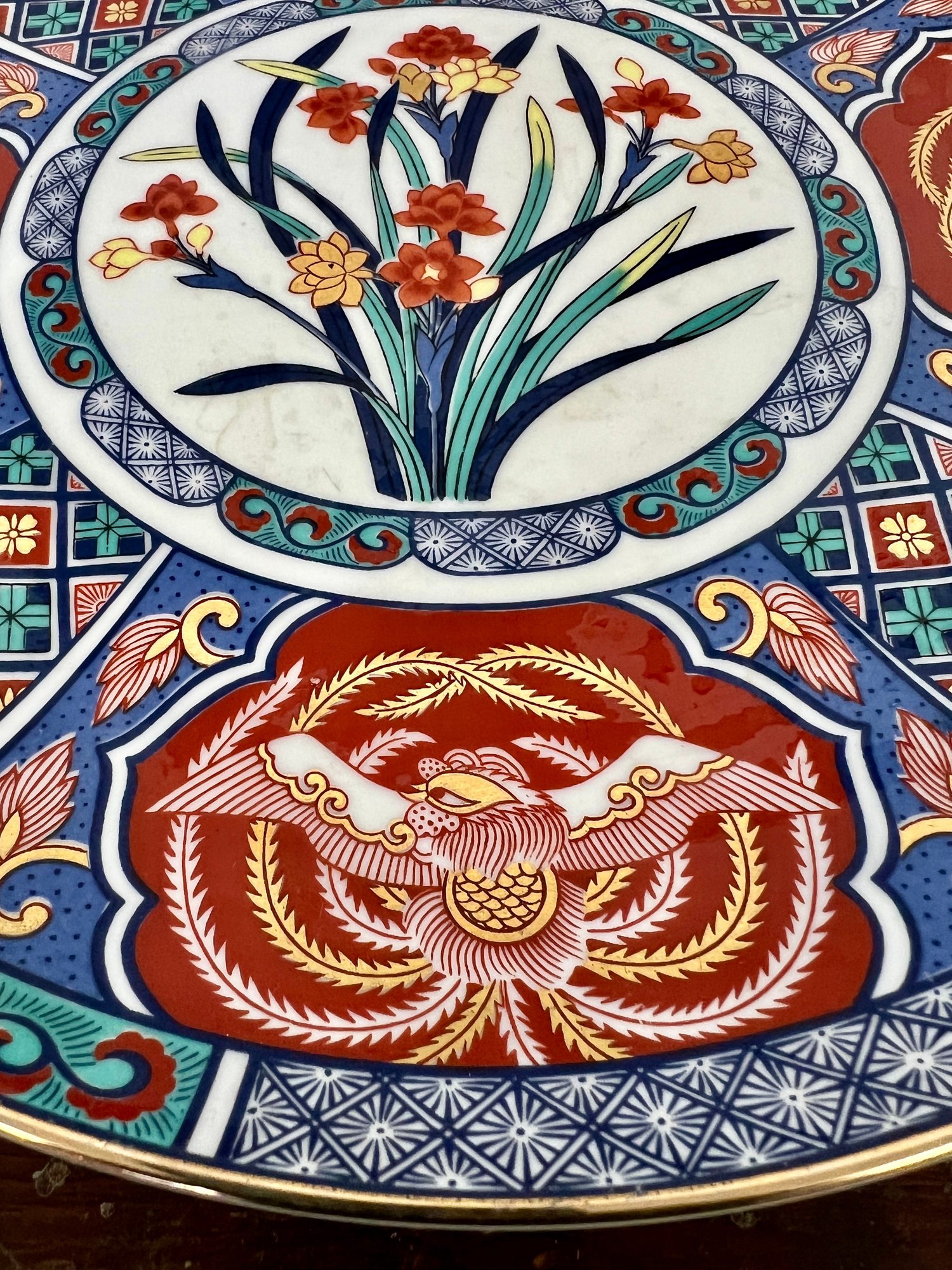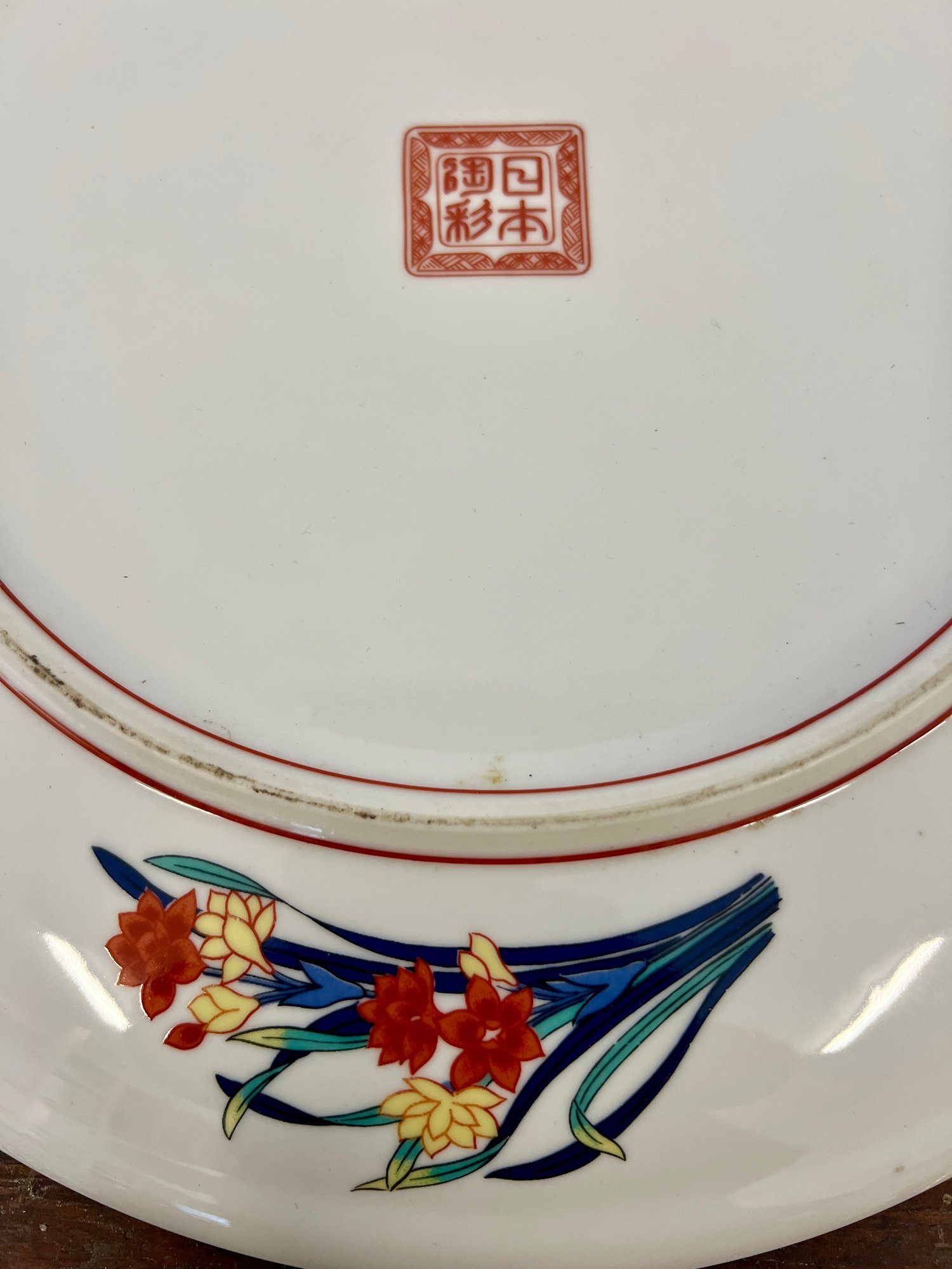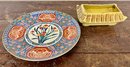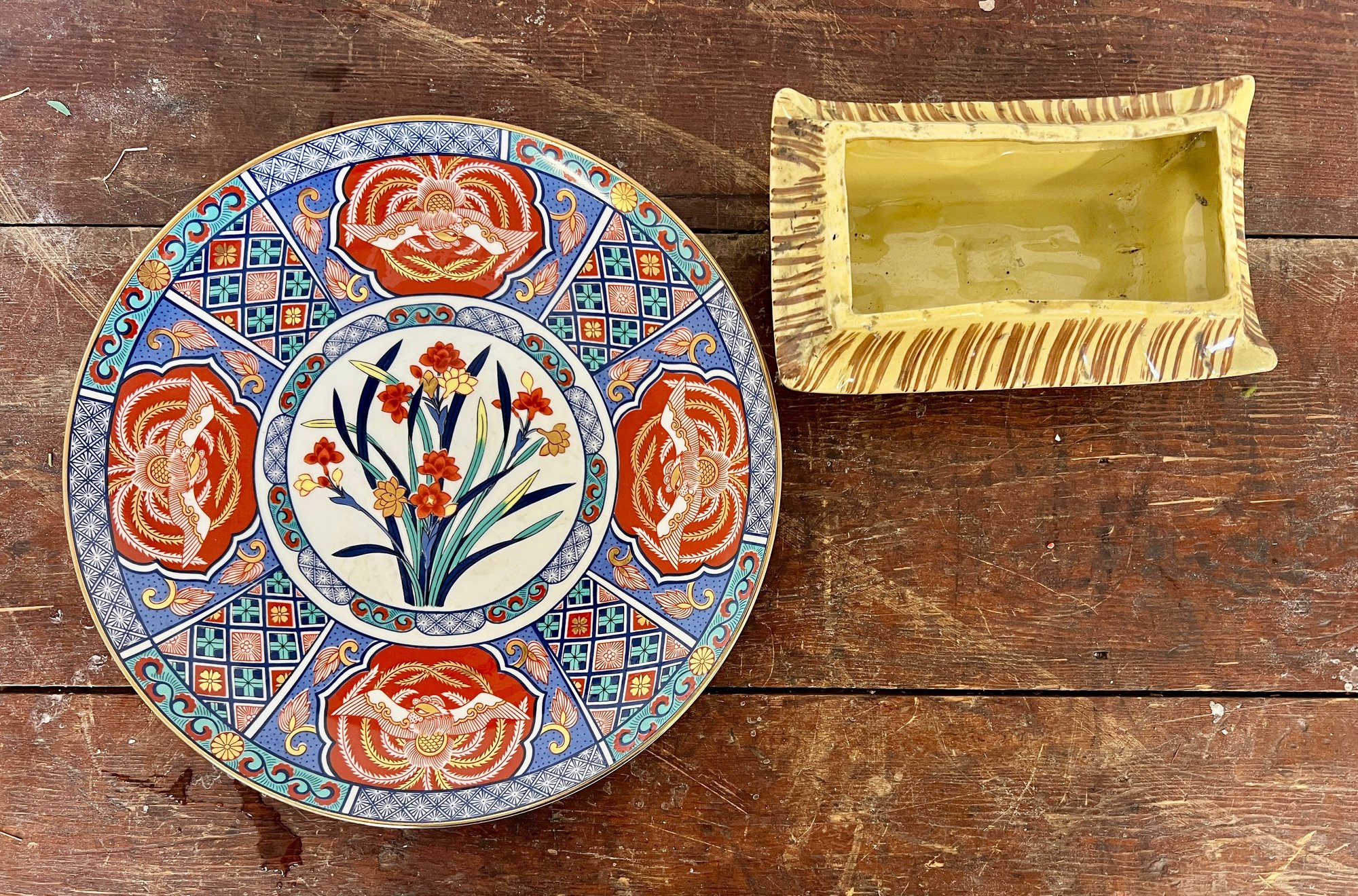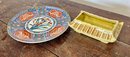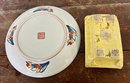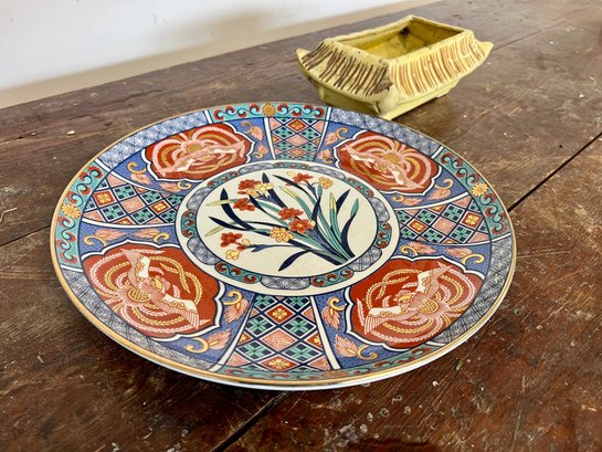 Vintage Imari decorative porcelain plate and small pagoda planter. Planter glaze is discolored.