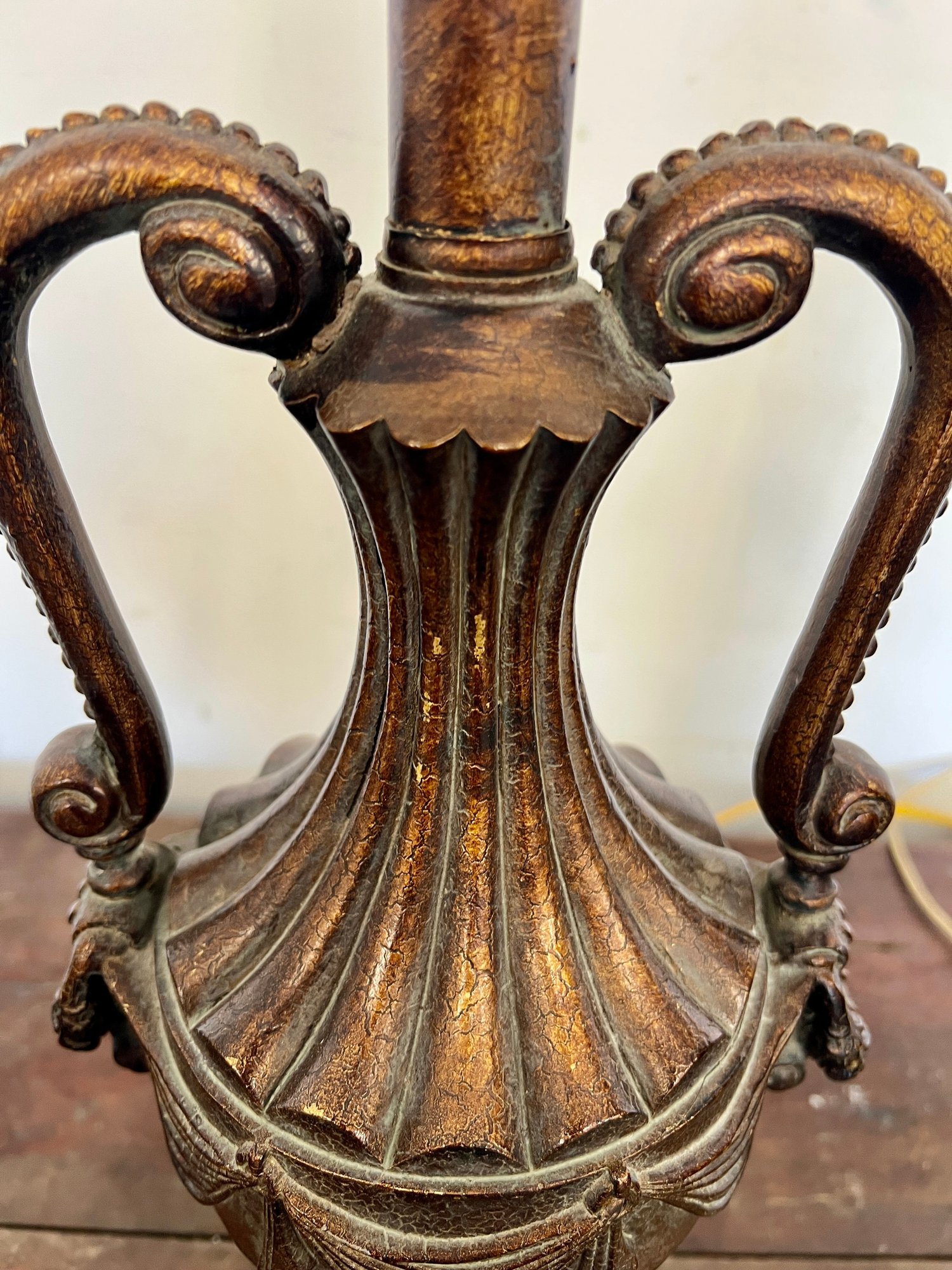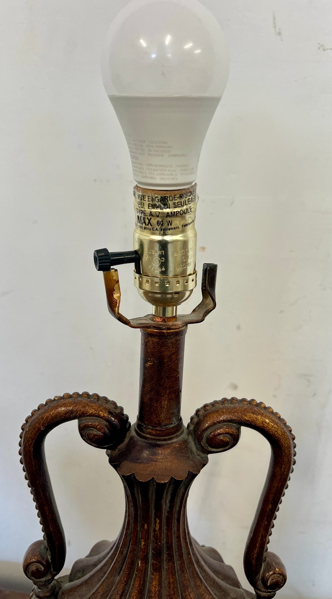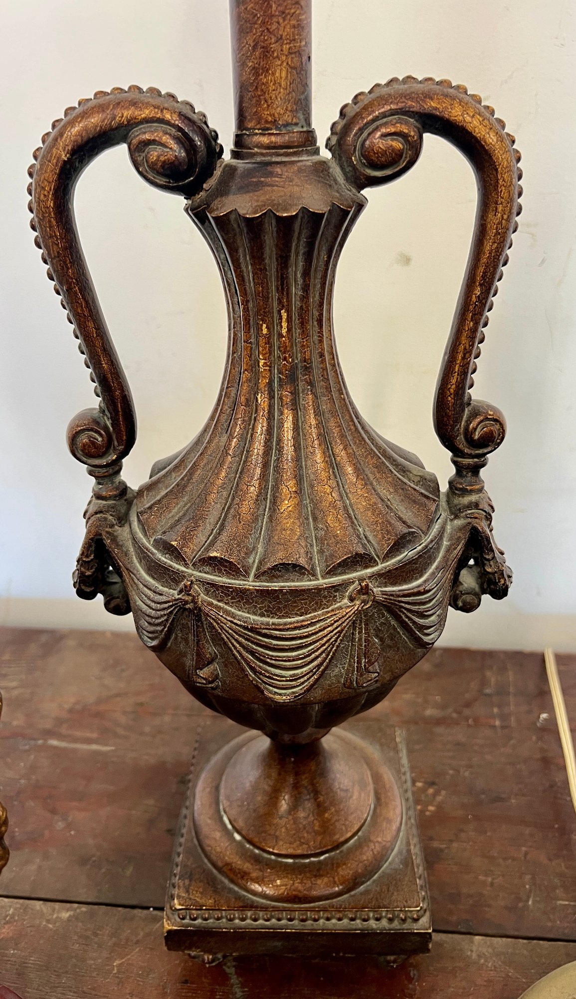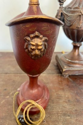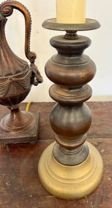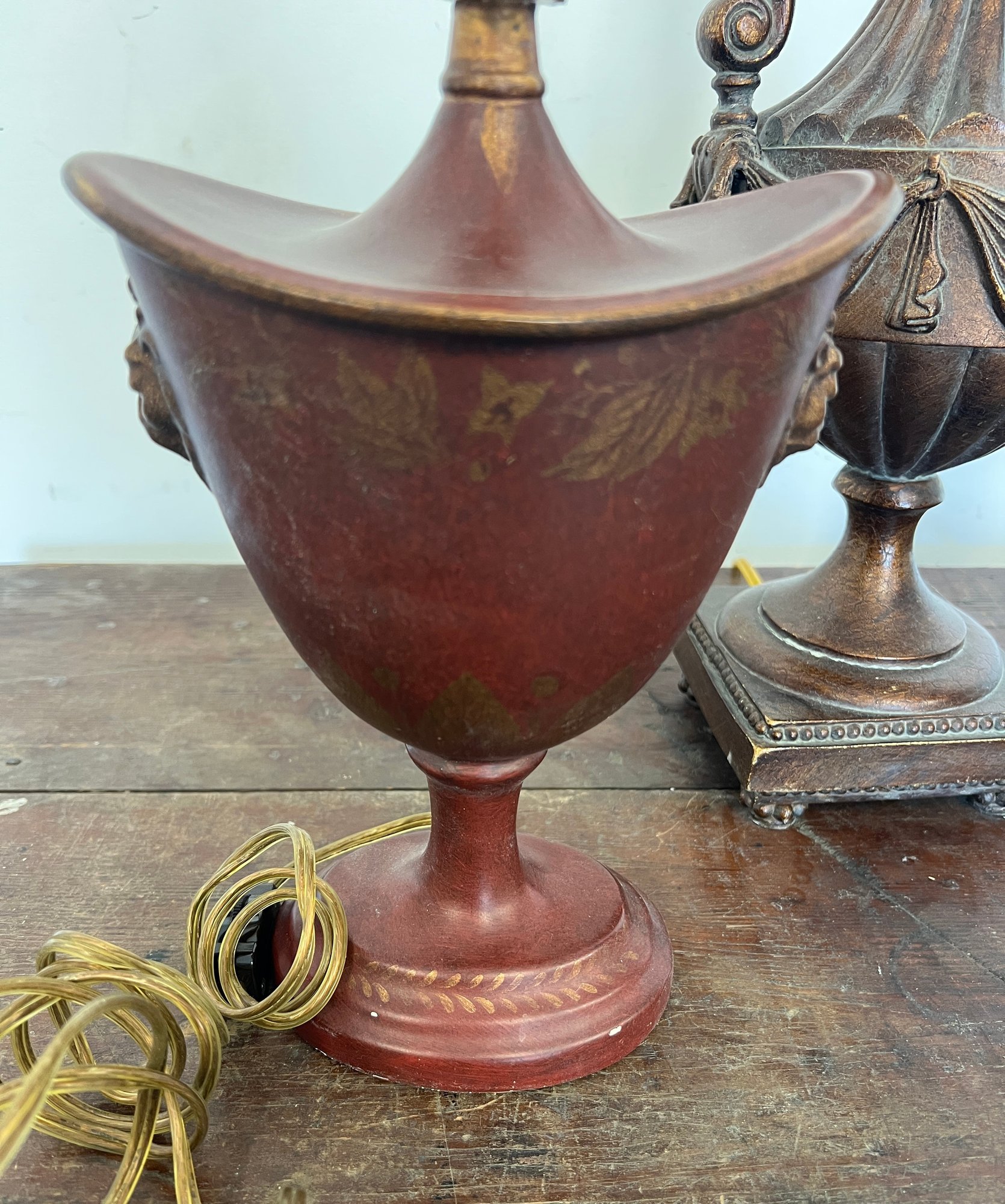 Three decorative tabletop lamps. Tallest lamp is 20"H. All harps are missing.