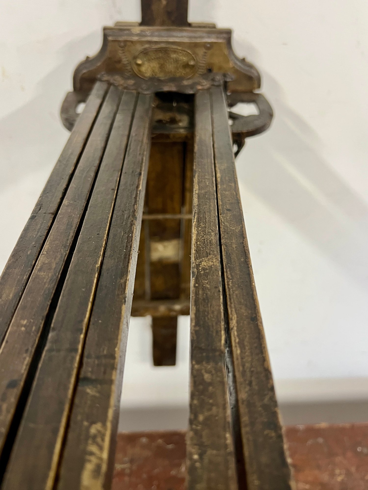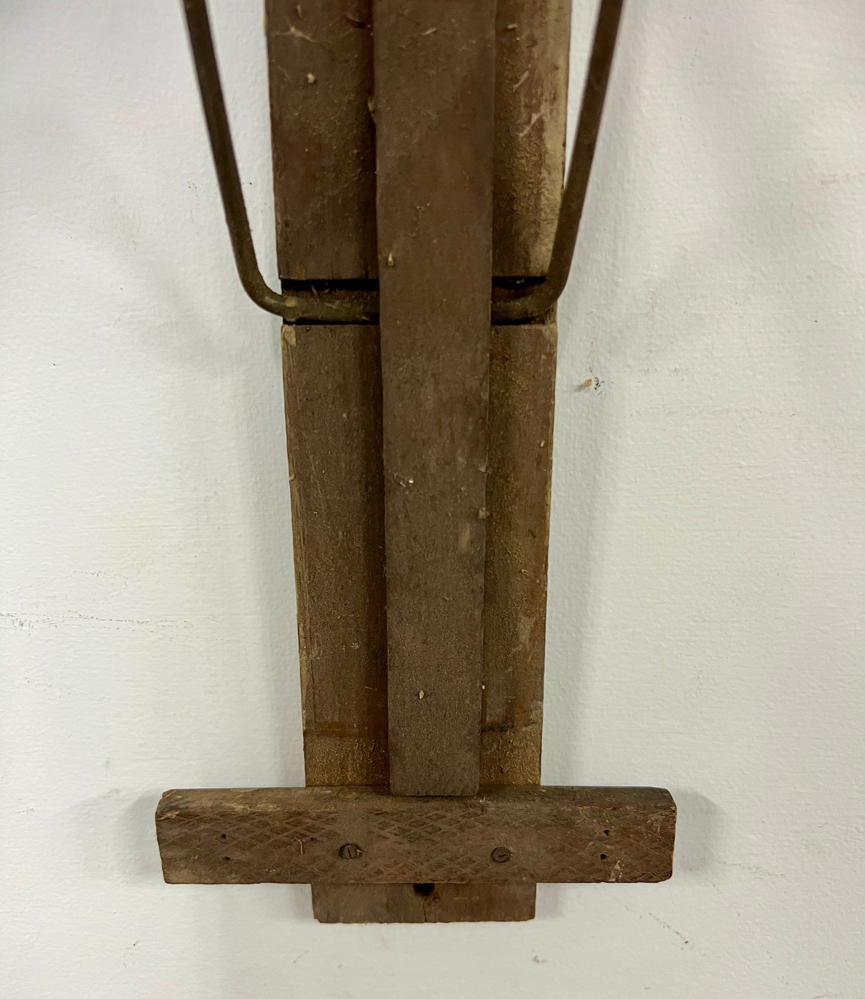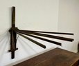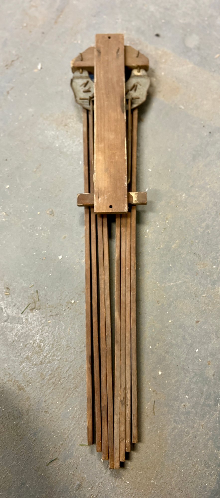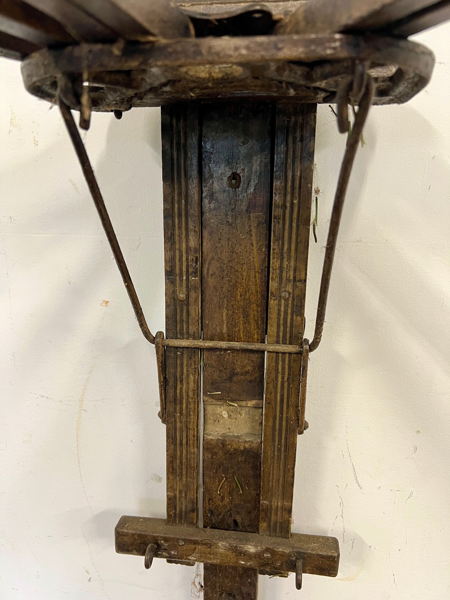 Two antique wooden clothes drying racks. One is missing a spoke.