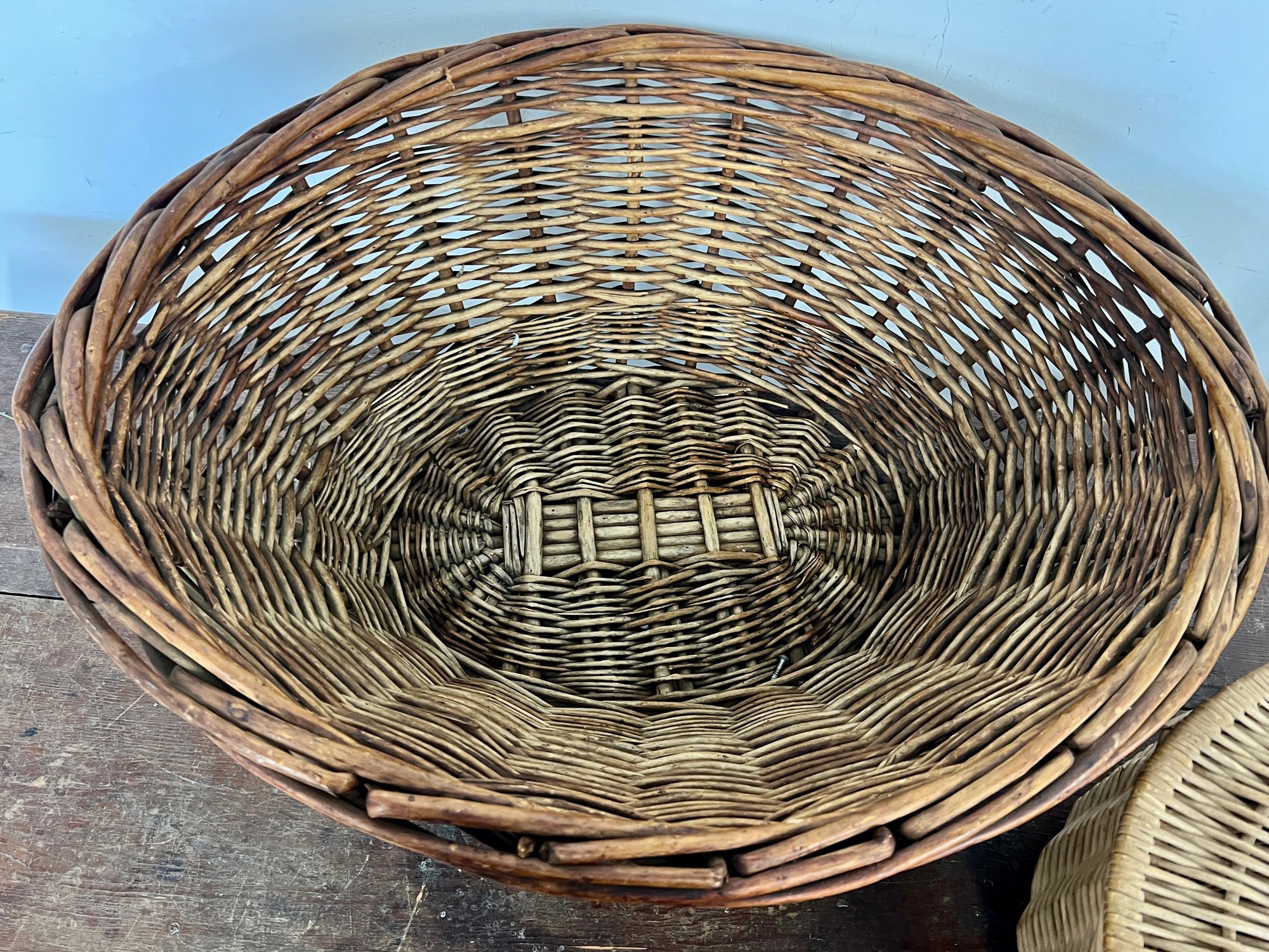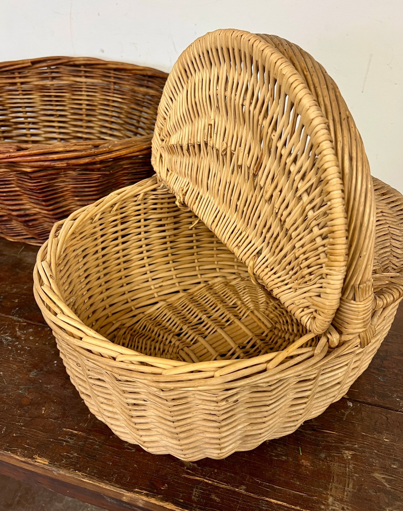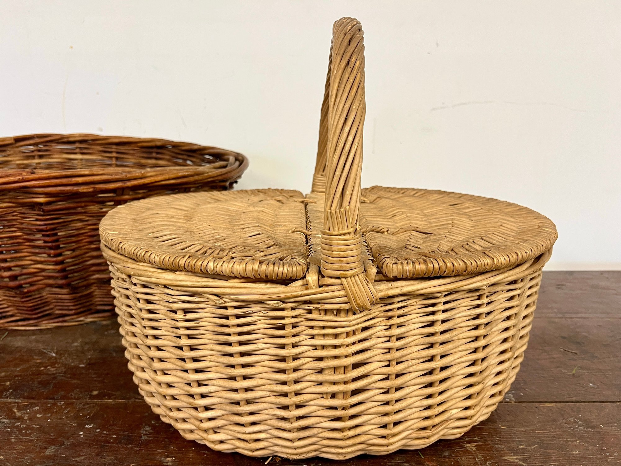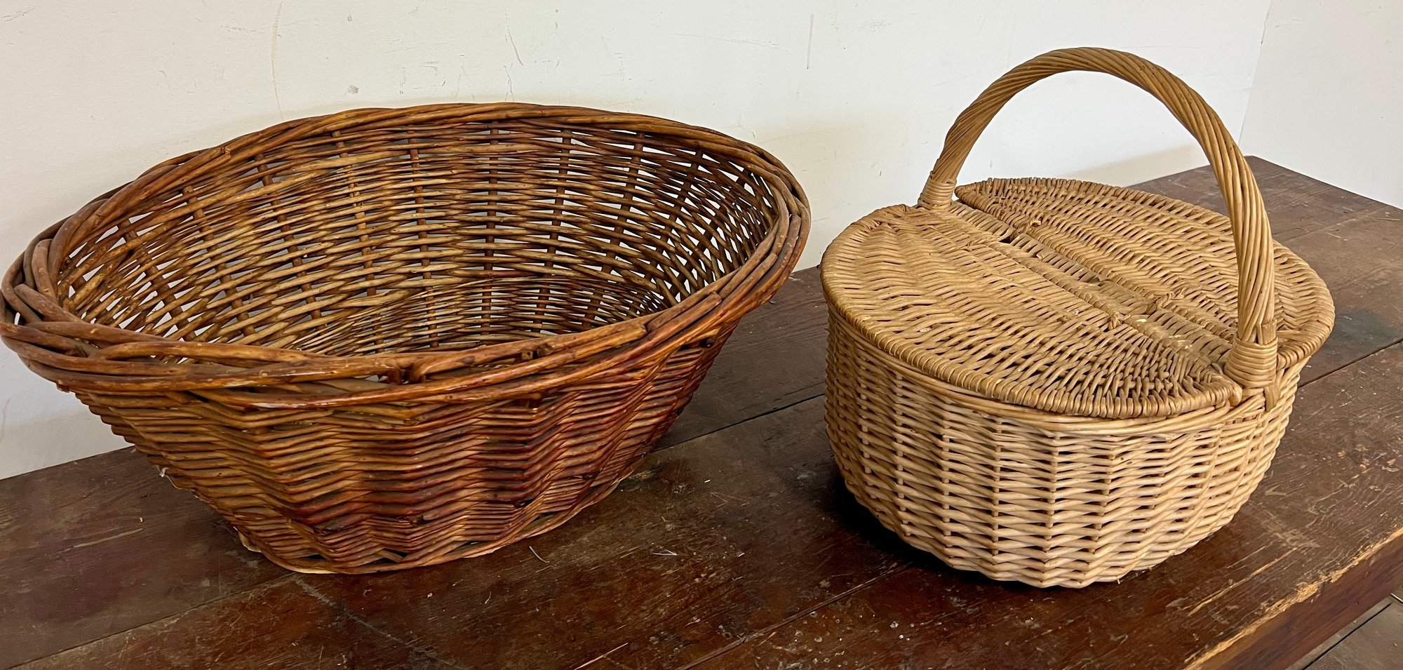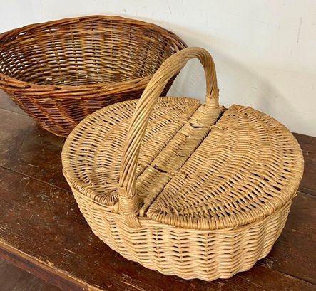 Two large baskets, one with lid.