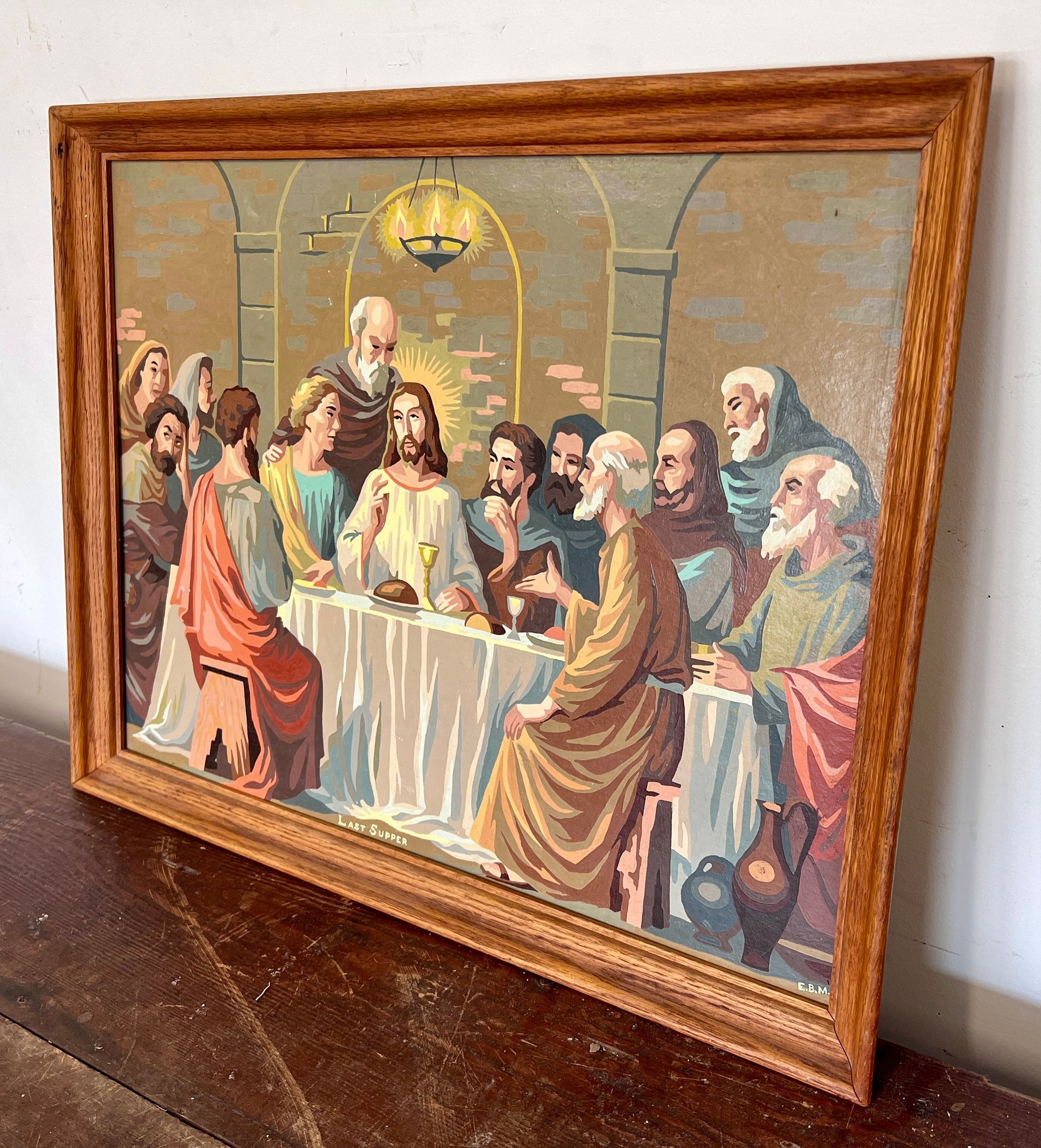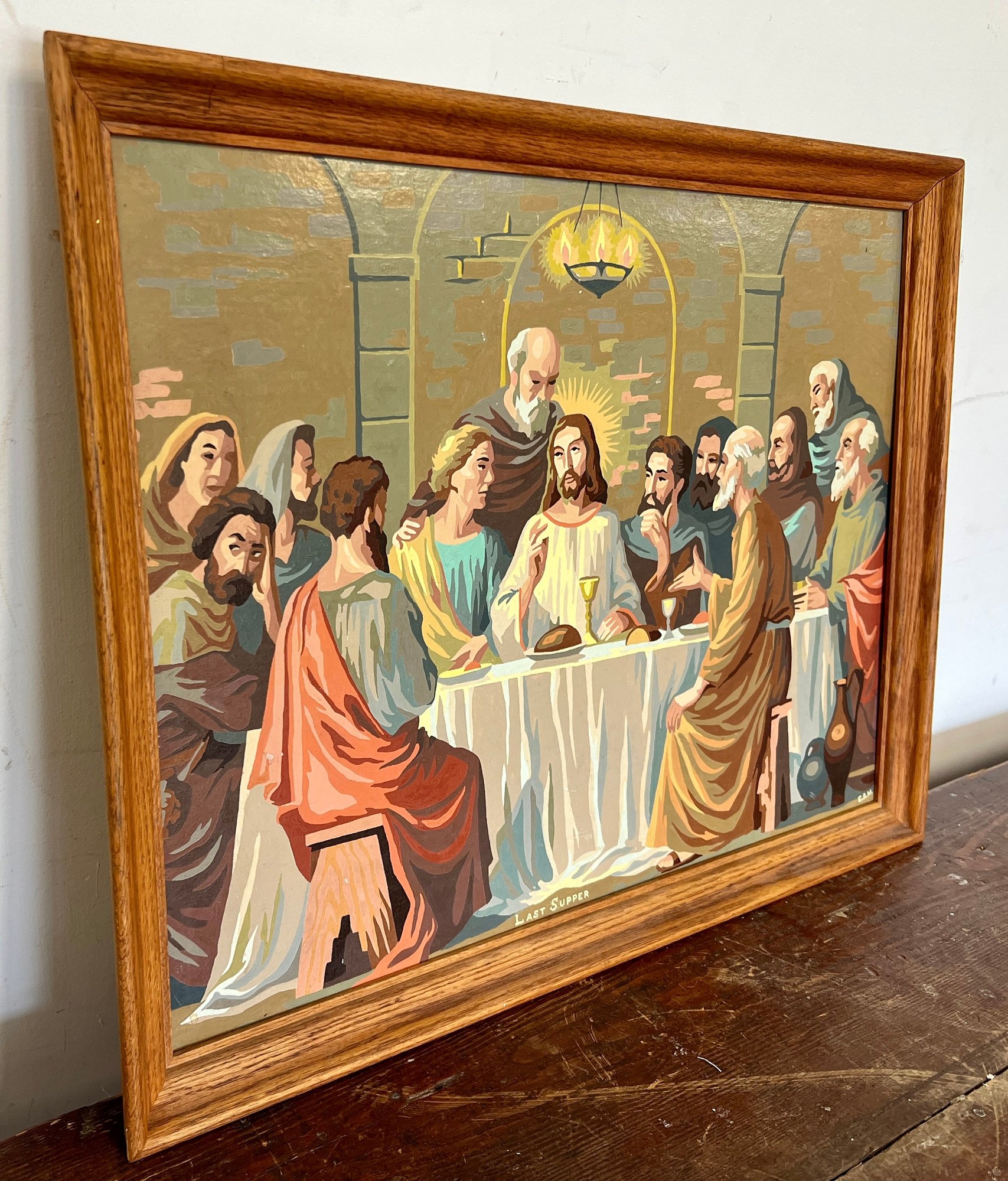 Vintage framed Last Supper paint by number.