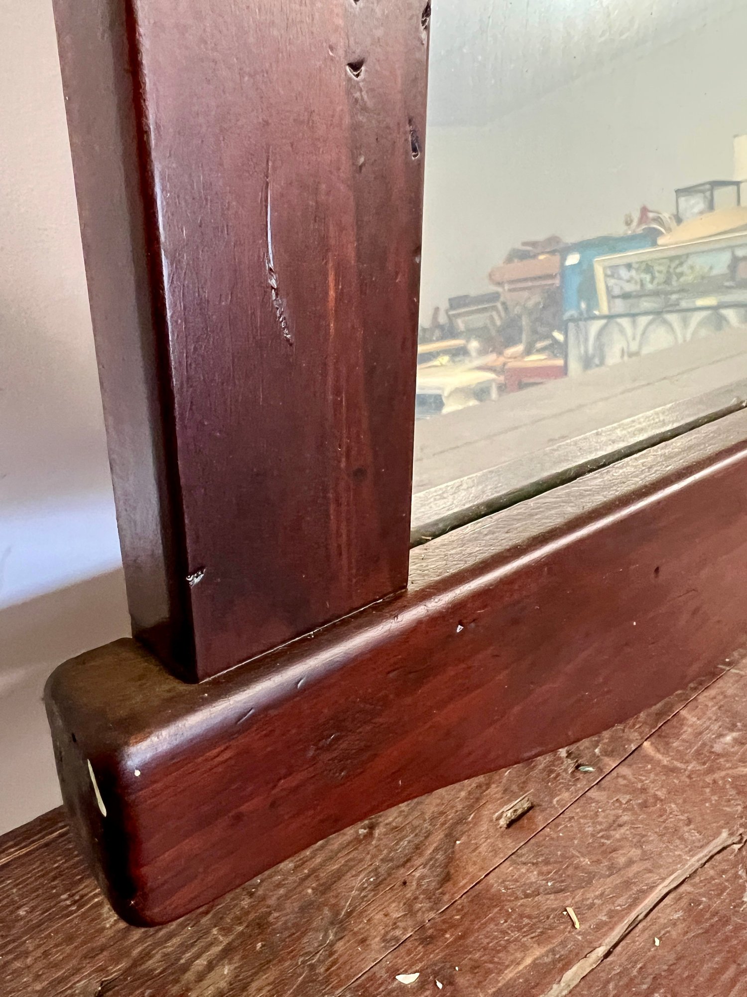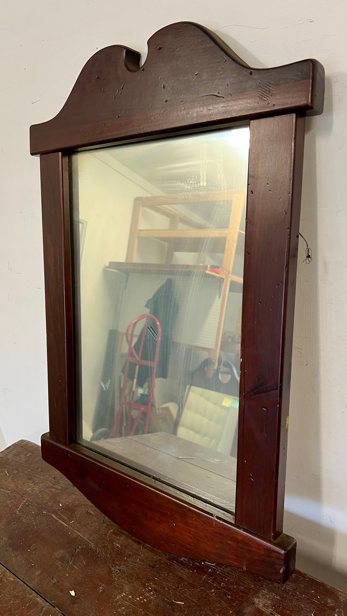 Vintage mirror in dark wooden frame.