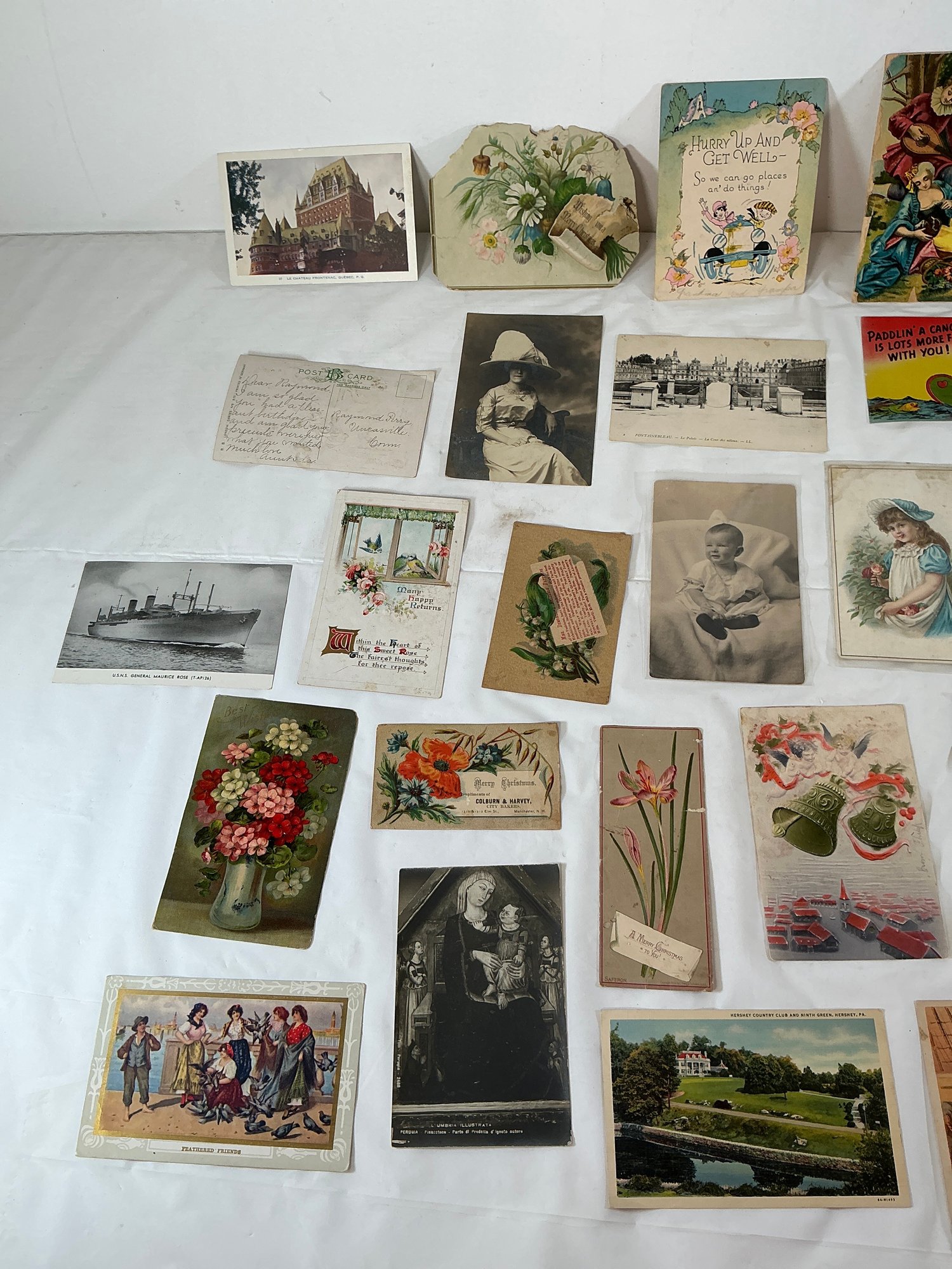 32 Vintage And Antique Postcards, Holiday Greetings, Scenic Views, And Floral Designs