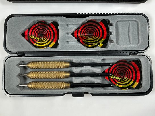 Accudart Steel Tip Dart Set, Includes Brass Barrels, Shafts, Flights, In Two Protective Carrying Cases