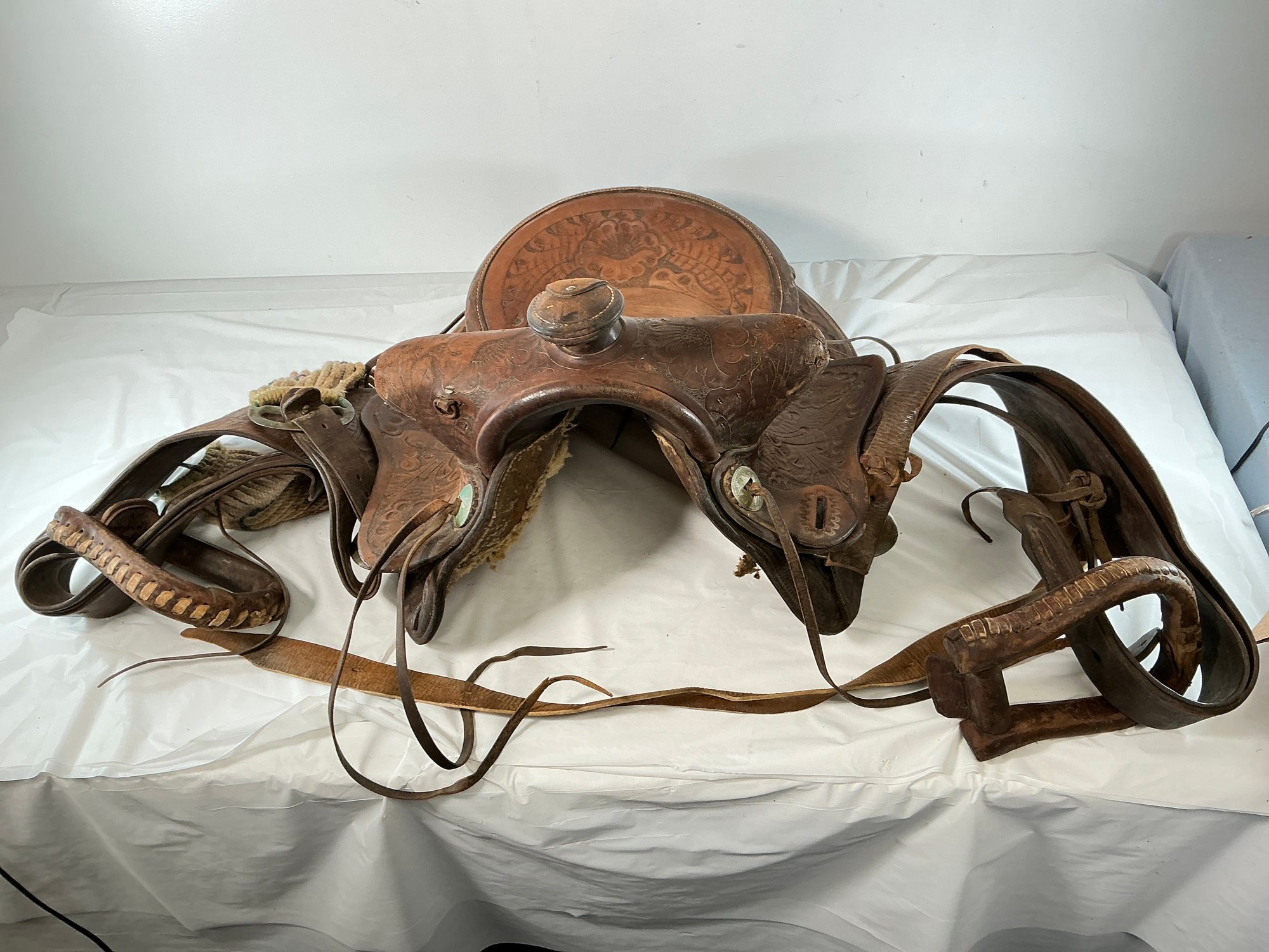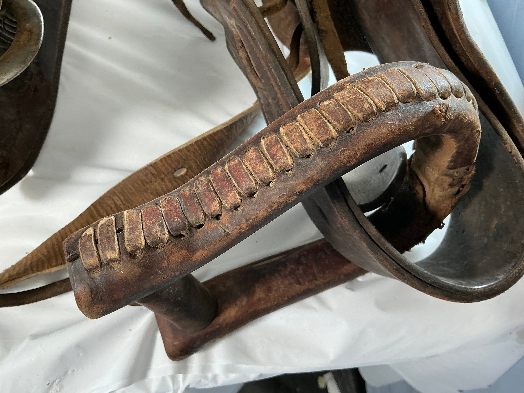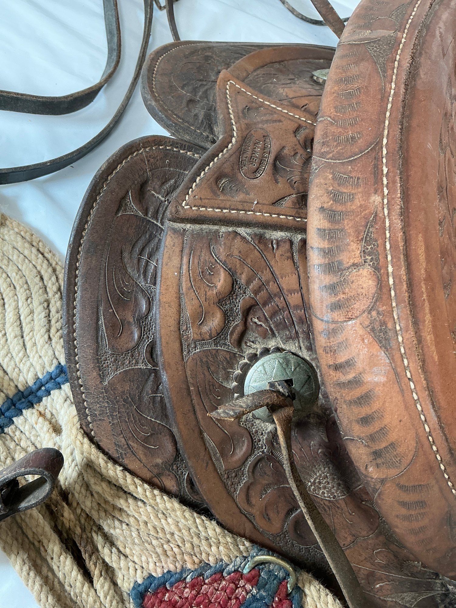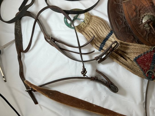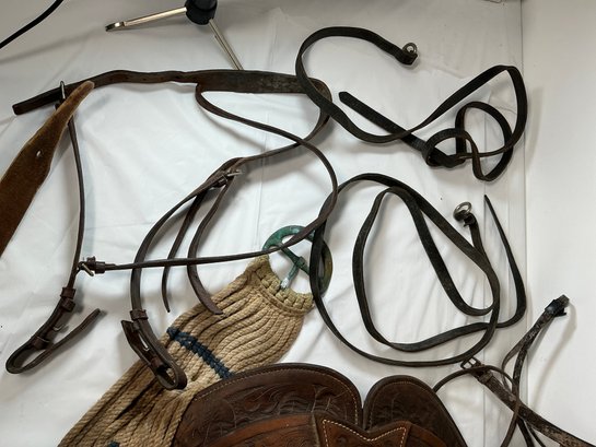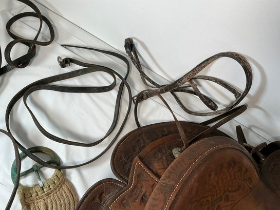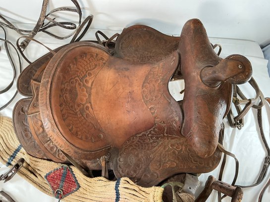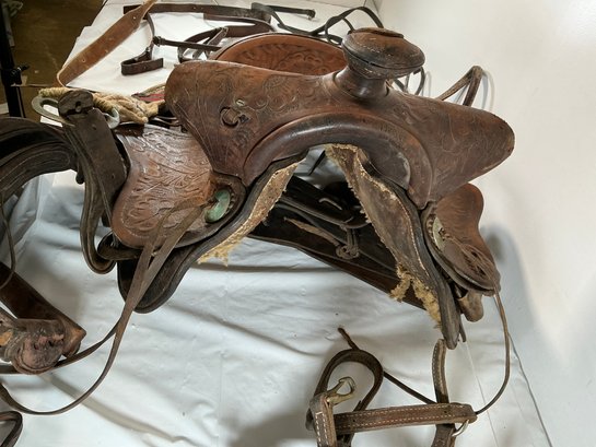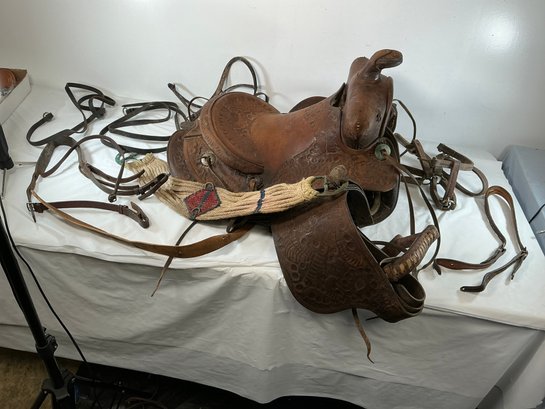 Antique Buck Steiner, Austin, TX Leather Horse Saddle With Stirrups, Leather Straps And Harnesses
