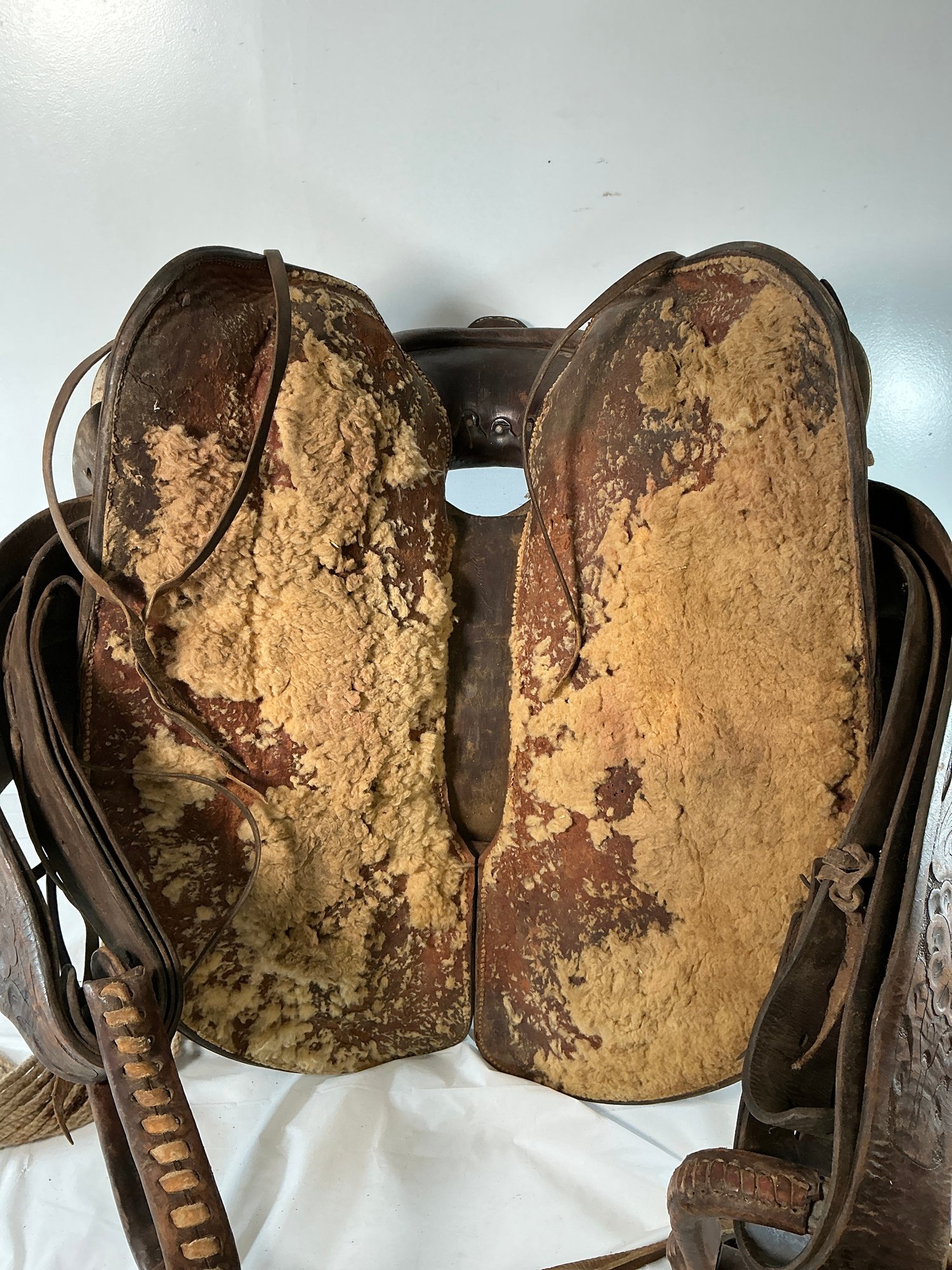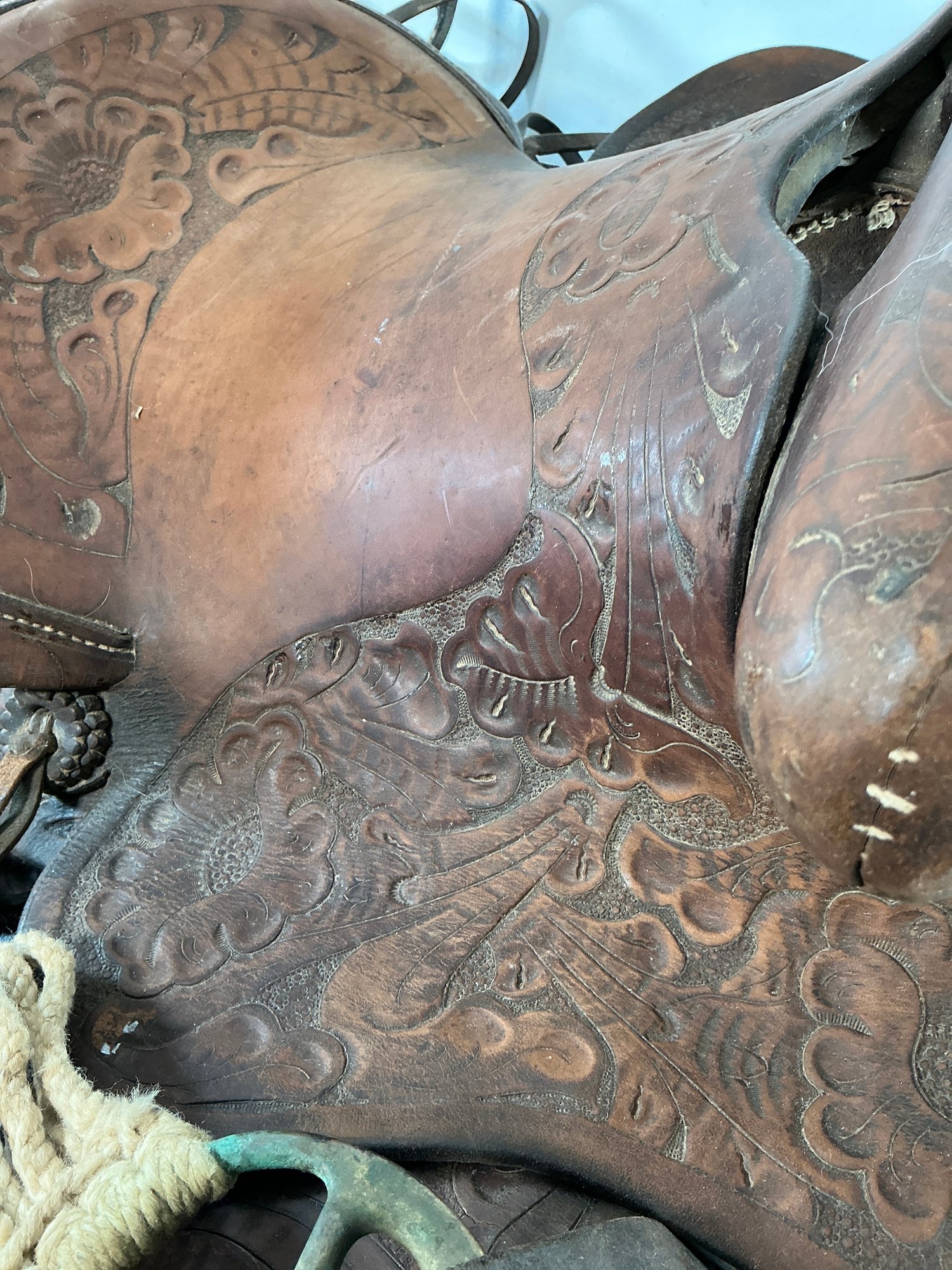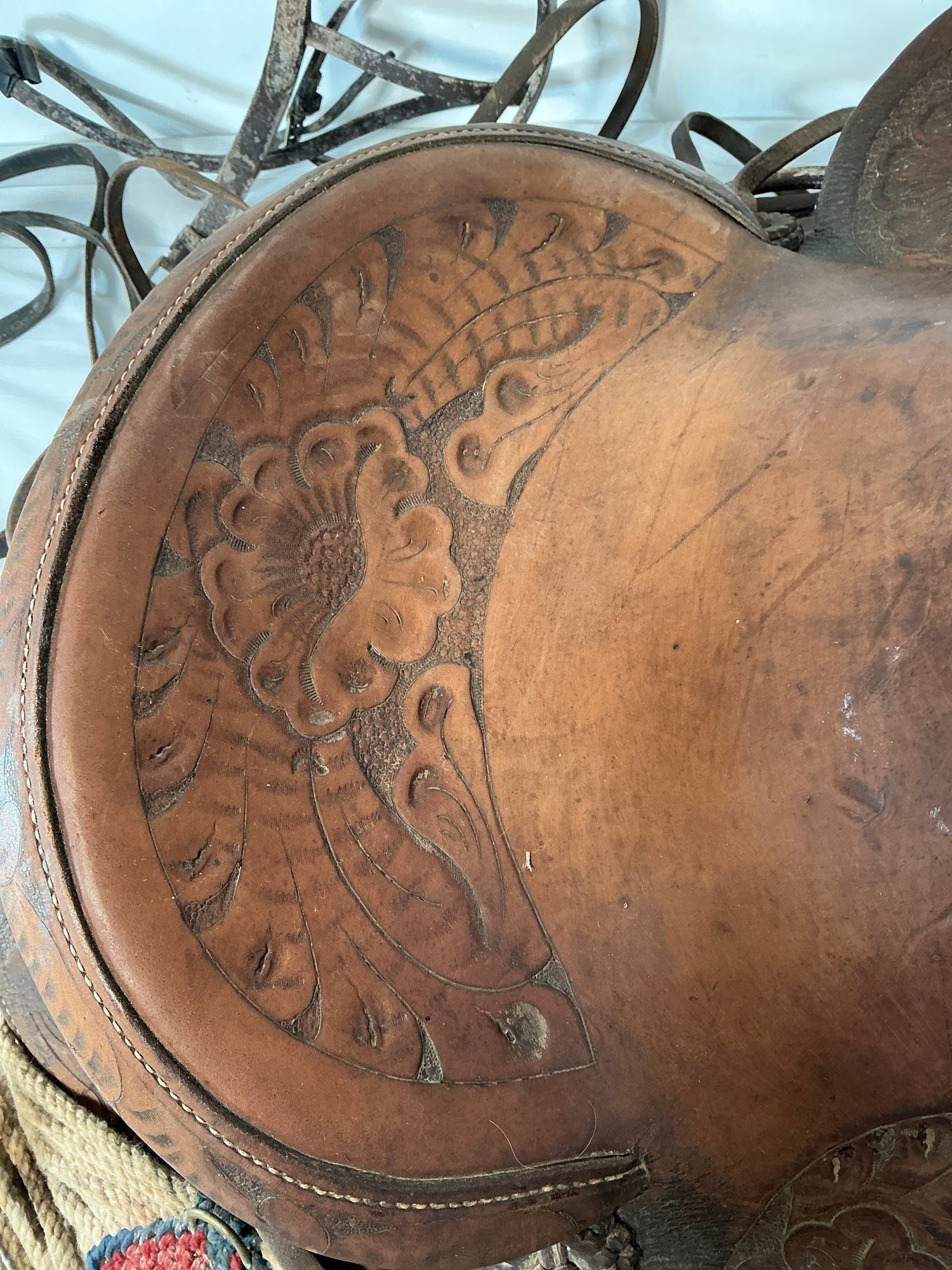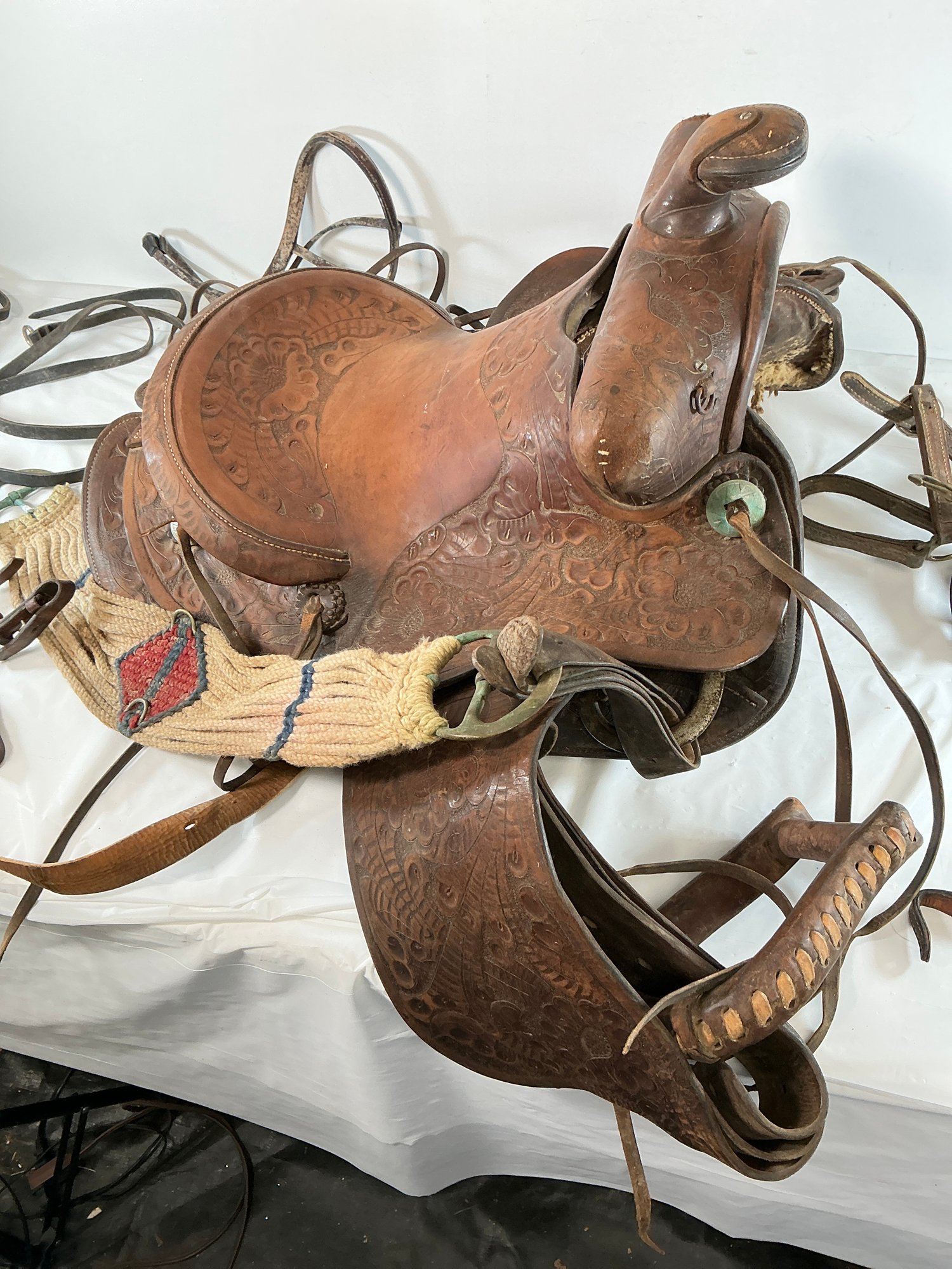 Antique Buck Steiner, Austin, TX Leather Horse Saddle With Stirrups, Leather Straps And Harnesses