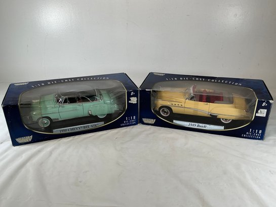 Die-cast Model Cars - 1950 Chevy Bel Air (light Green) And 1949 Buick Roadmaster Convertible (yellow)