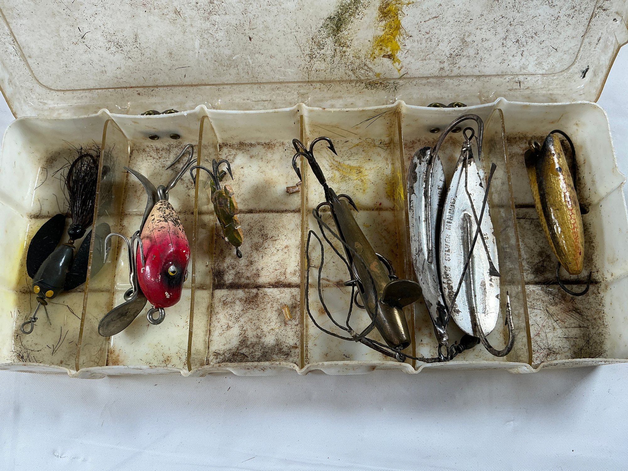 Vintage Fishing Lures, Including Red-headed Heddon Crazy Crawler And Johnson Silver Minnow
