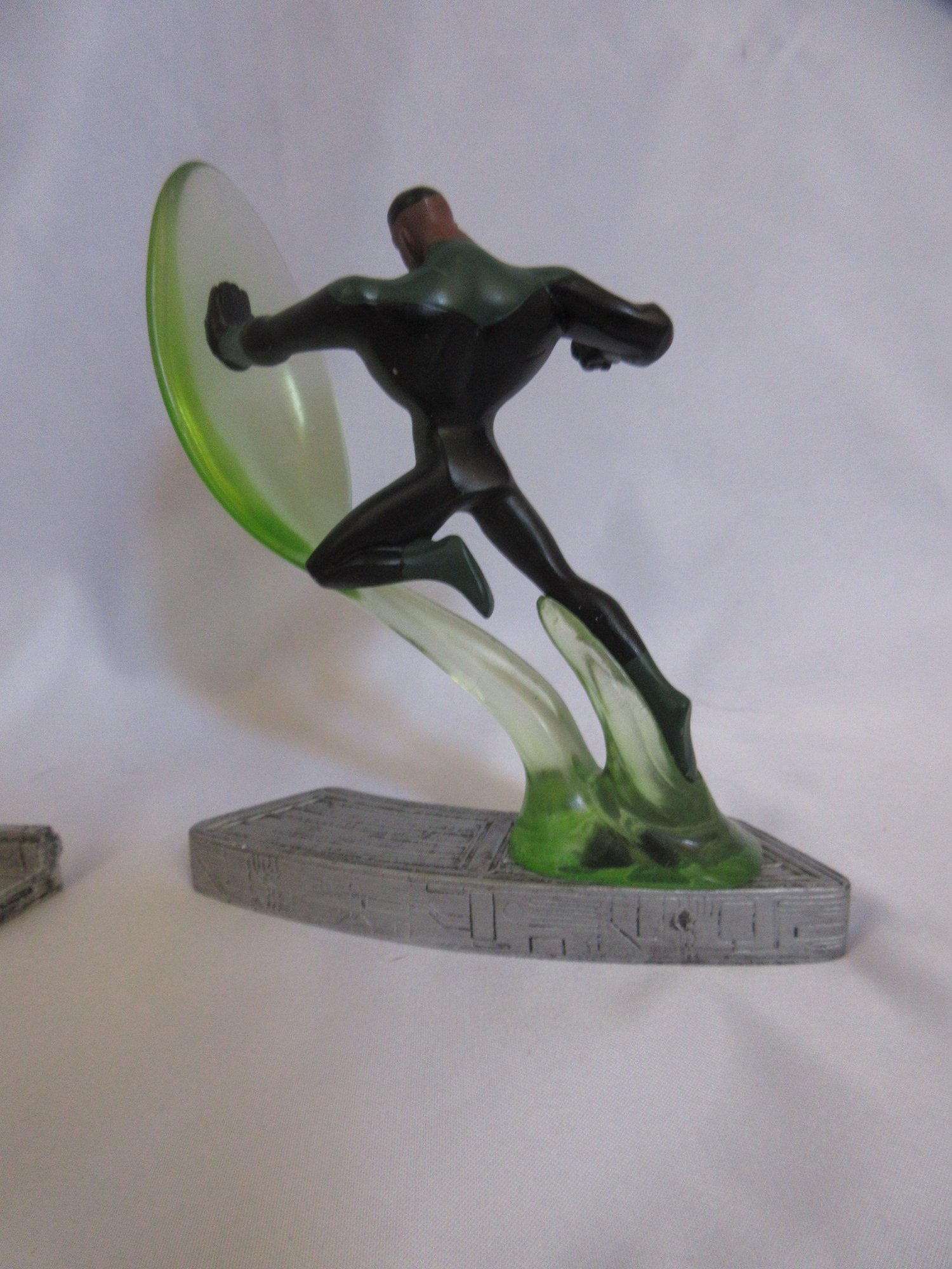Set of three DC Comics character figurines including Superman, The Flash, and Green Lantern, manufactured by Monogram International (2005). Each figure is mounted on a themed display base. These were typically sold as collectible display pieces or bank-style figures.