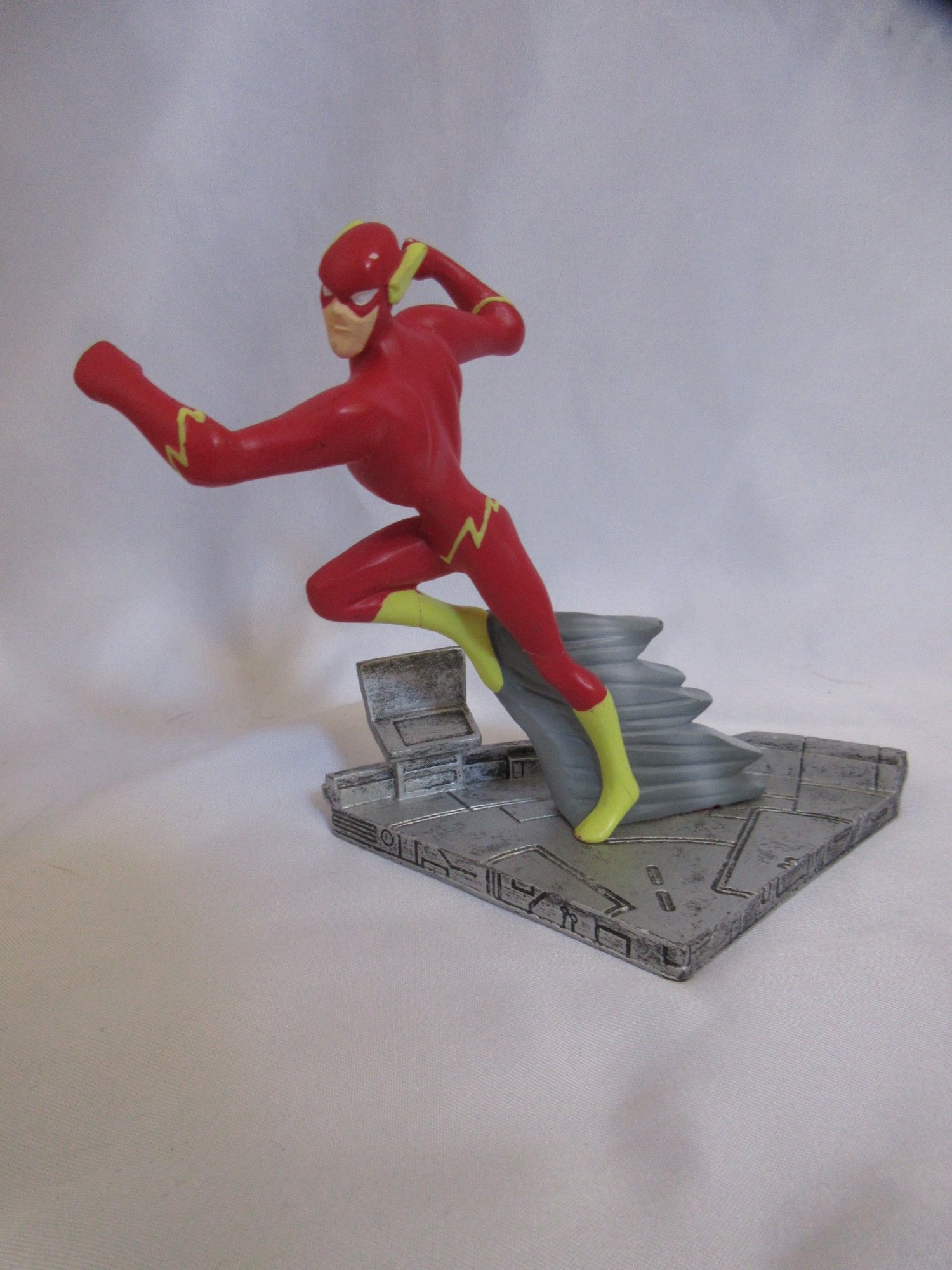 Pre-owned condition. The Flash figure has been repaired, with legs previously broken and reattached. Visible wear consistent with handling and display. Other figures appear in good condition with minor surface wear. Please review photos carefully.