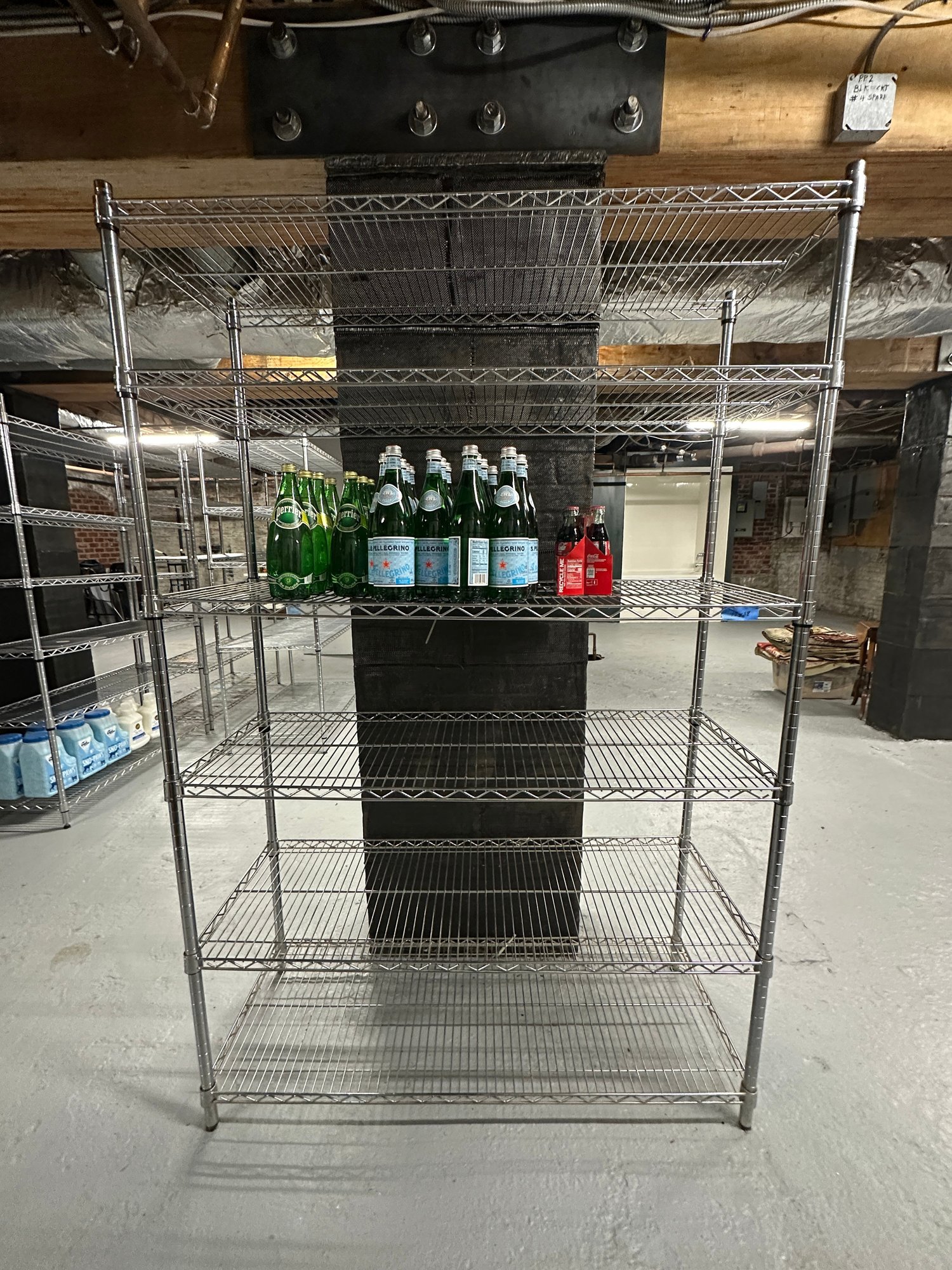 Contents of shelf not included. PICKUP FOR THIS ITEM IS BY APPOINTMENT, WEEK OF APRIL 27. BUYER MUST BE ABLE TO DISASSEMBLE AND REMOVE THESE FROM BASEMENT.