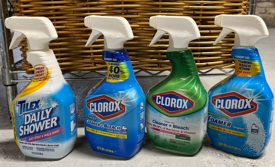 5 Tilex Daily Shower Cleaner, 3 Clorox Clean Up with bleach (fresh scent), 4 Clorox Clean Up with bleach (original), 2 Clorox Bathroom Bleach Foamer (original), 3 Clorox Clean Up with bleach (rain clean scent). 17 Items Total
