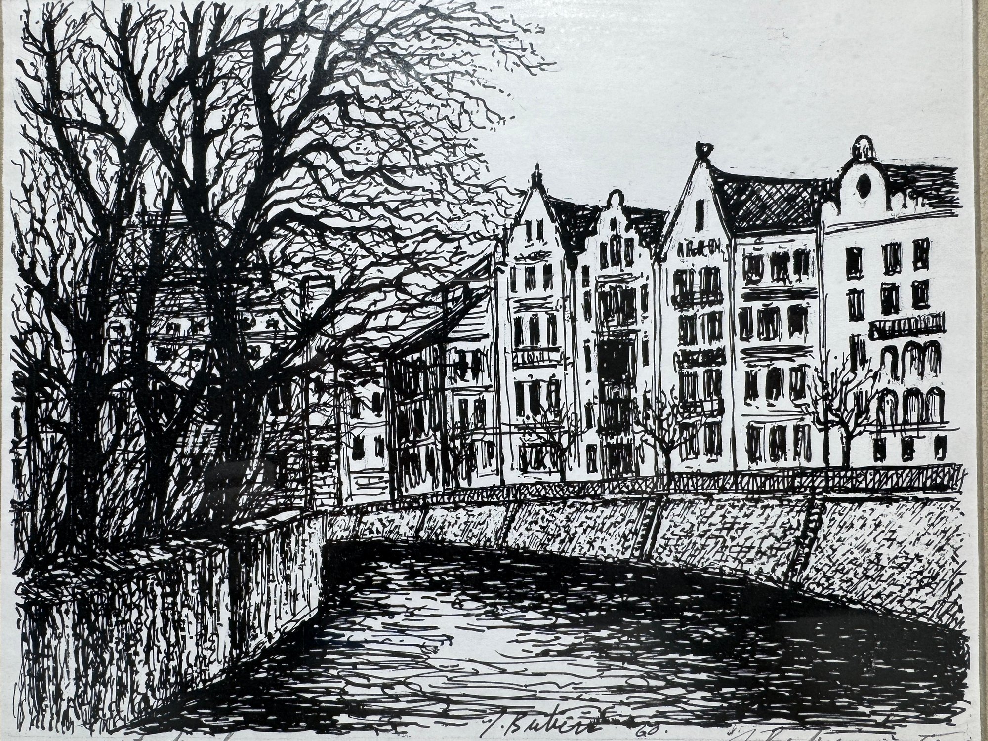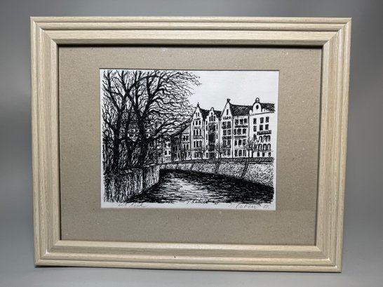 H: 12 x w: 15 inches (framed), H: 6 1/2 x w: 8 1/2 inches (sight)