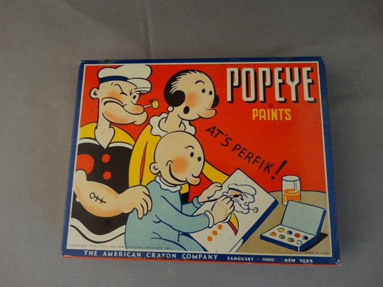 1933 Popeye paint set with original paints, used. Circa King Feature American Crayon Company