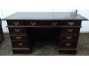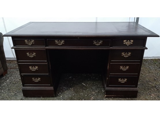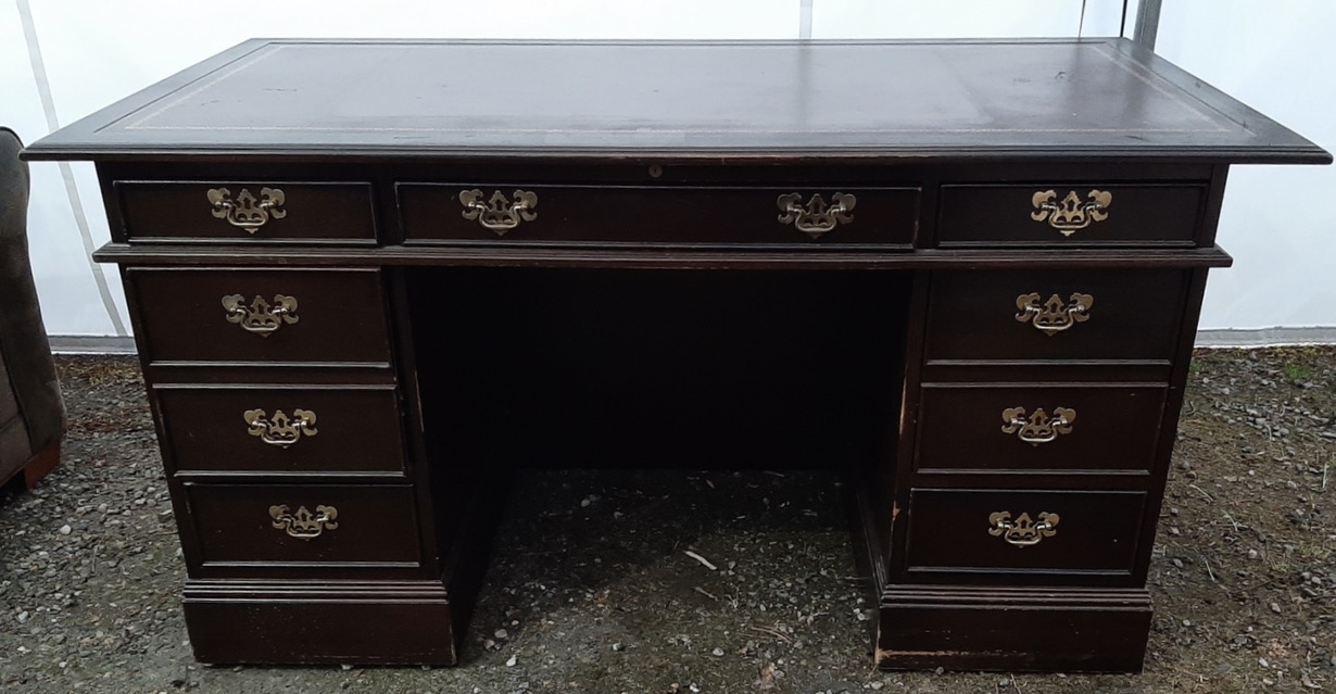 60" wide x 30.5" high x 30" deep wooden desk drawer with leather inlaid top.