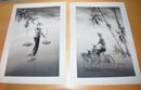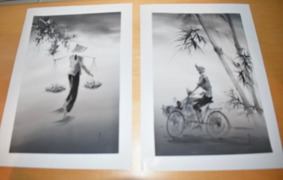 Pair Of Black White Grey Cambodian Paintings On Silk Textile Art