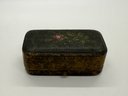 Antique Small Leather Jewelry Cuff Link Box Dark Brown Leather Flowers With Purple Interior #700