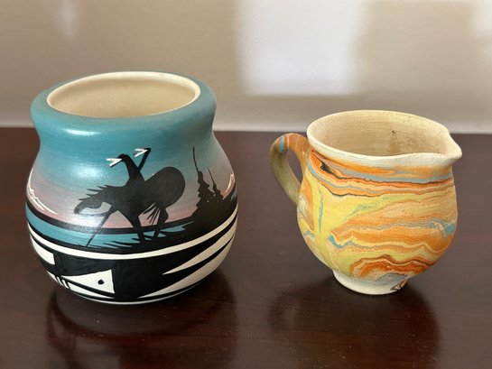 Native American Navajo Signed Small Ginger Jar Pot And Pitcher