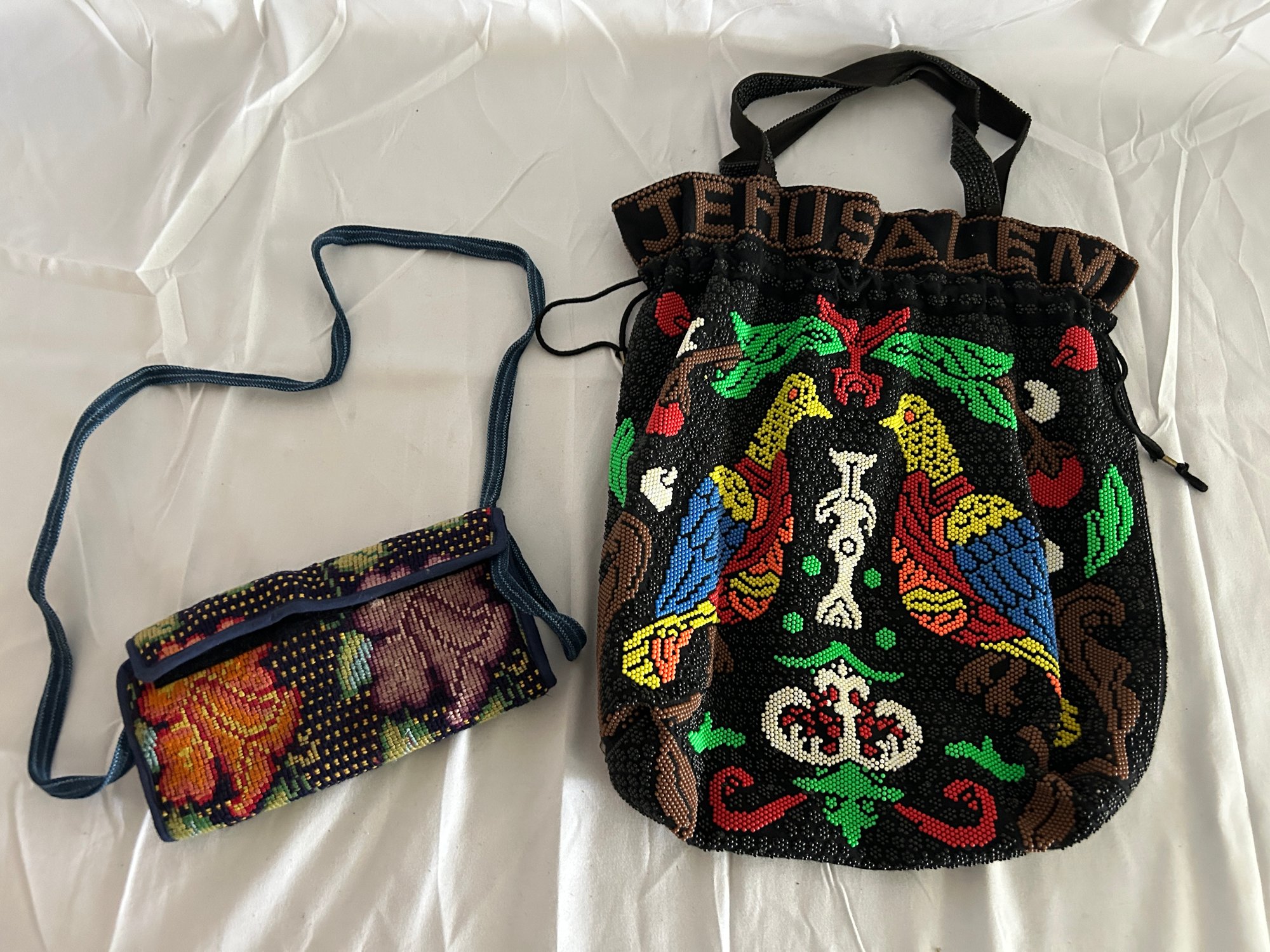Beaded Jerusalem Tote Bag With Woven Purse Bag