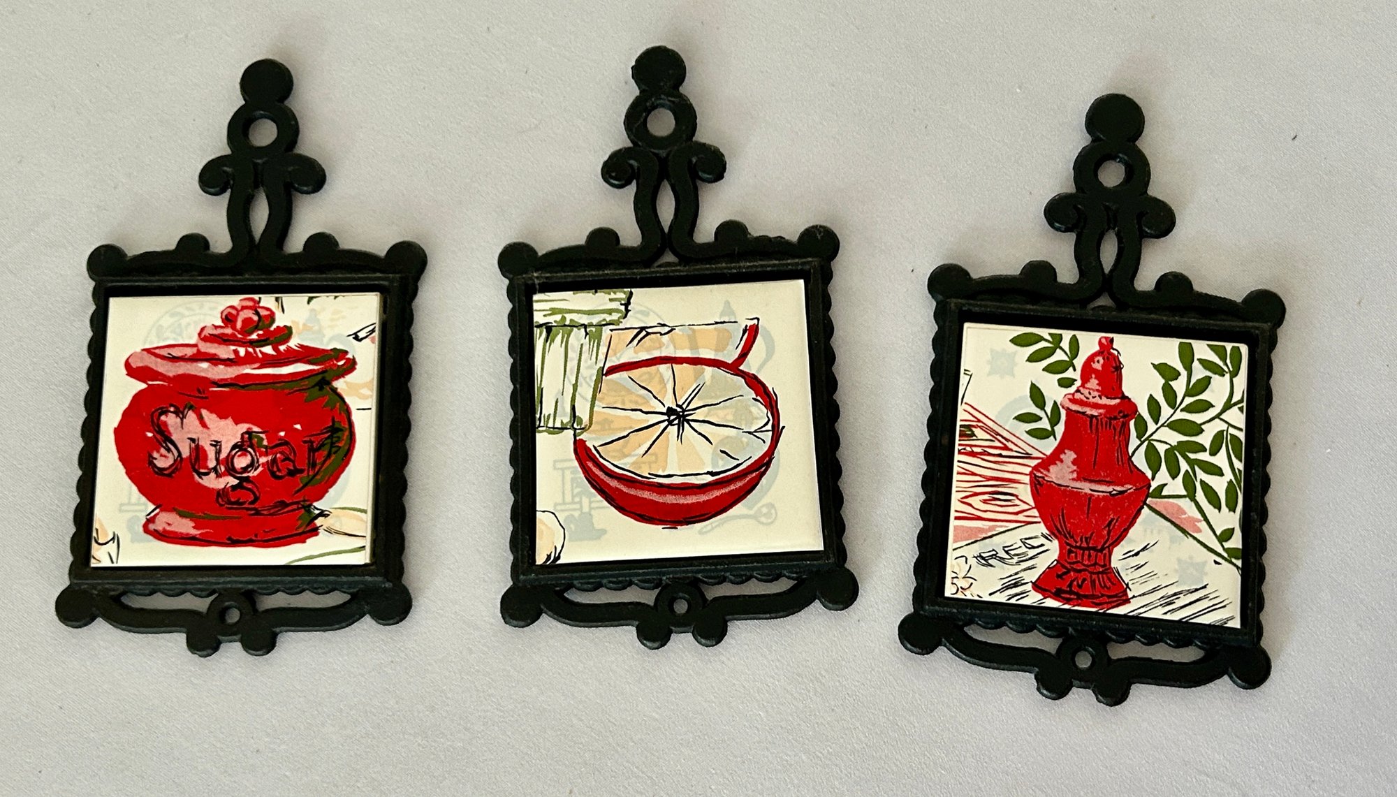 Chadwick Vintage Cast Iron And Ceramic Tile Trivets (3) Made In Japan