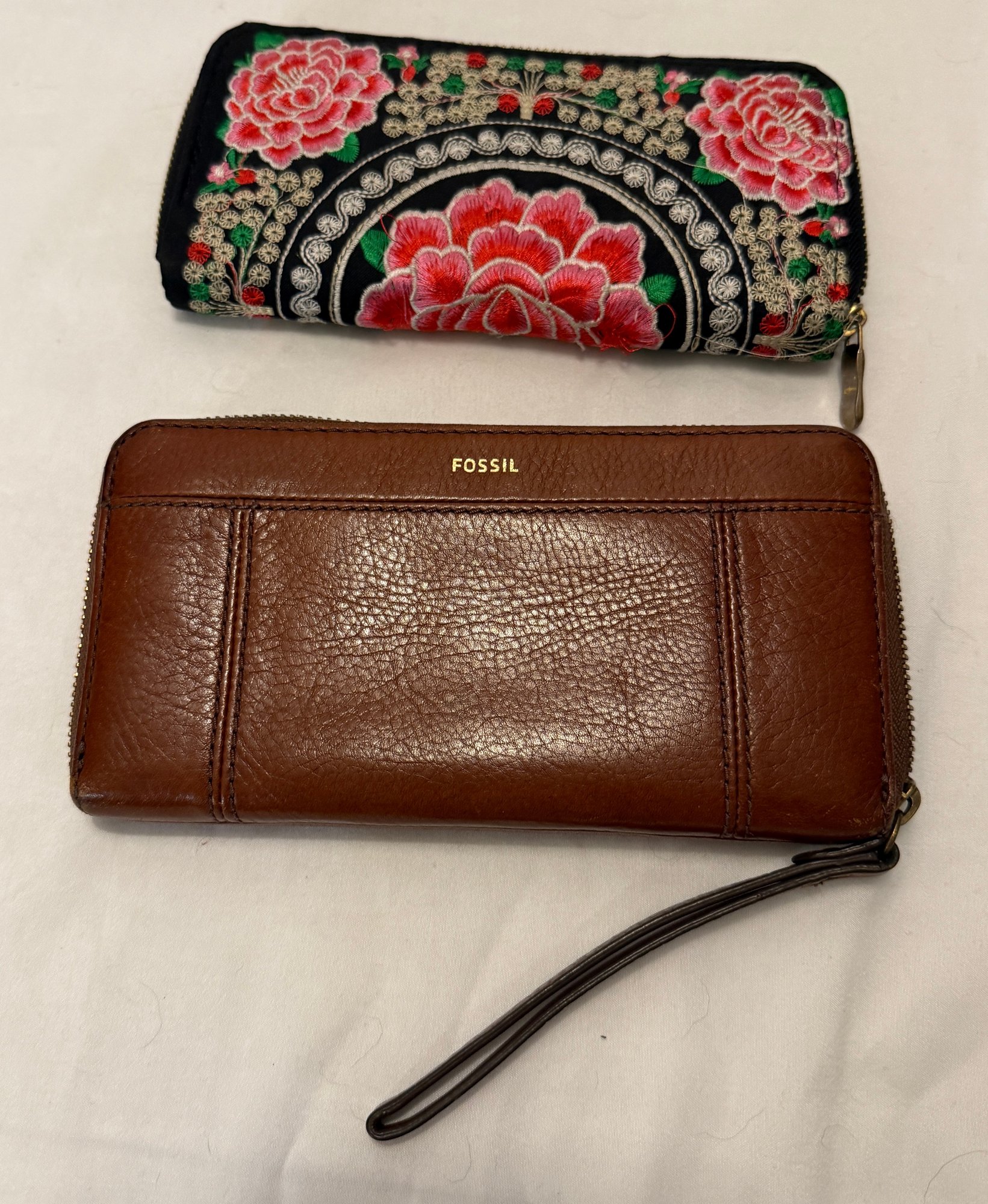 Fossil And Floral Embroidered Wallet Wristlet Clutch