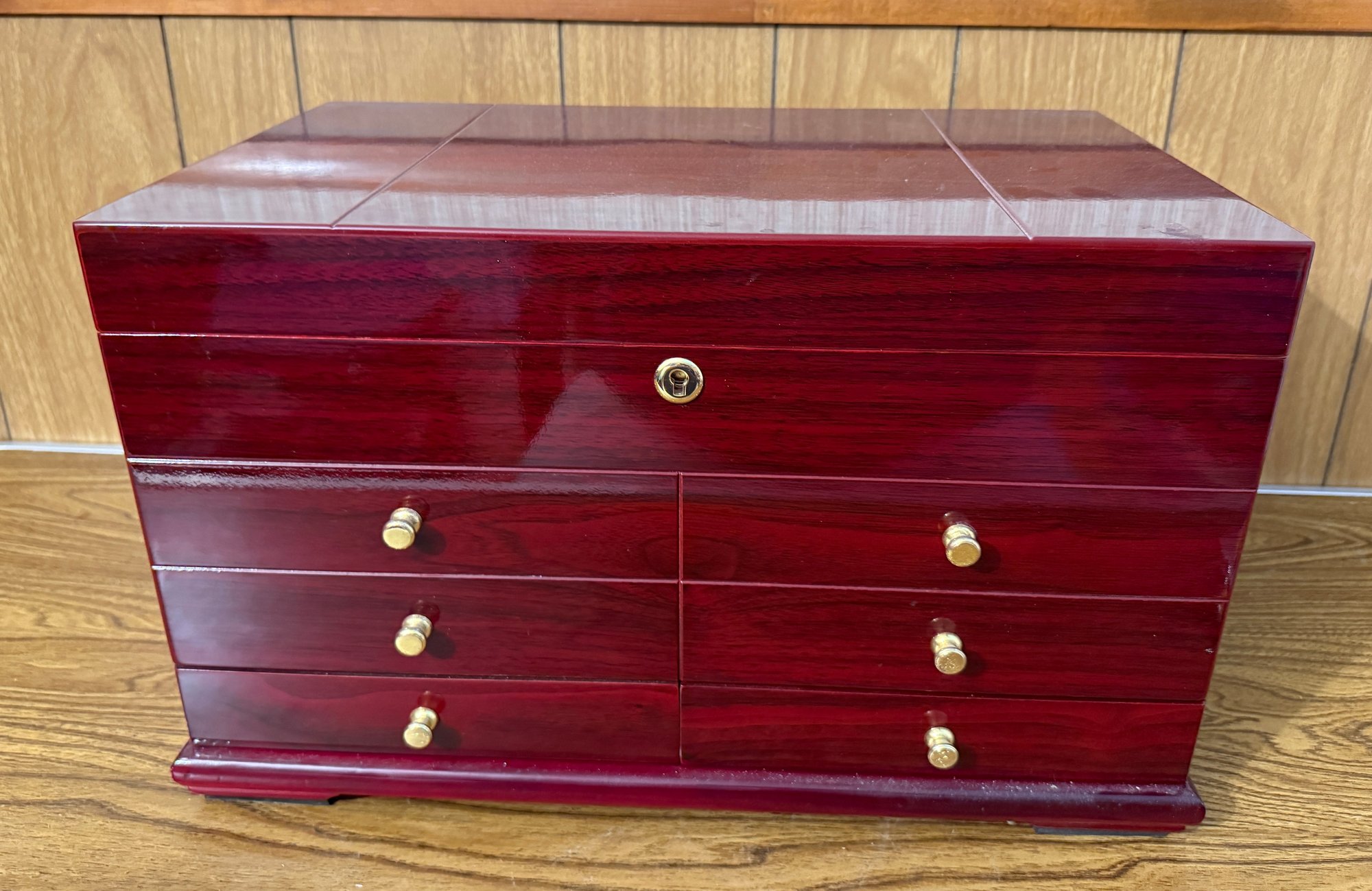 High Gloss Cherry Humidor With Drawers, Lock And Keys