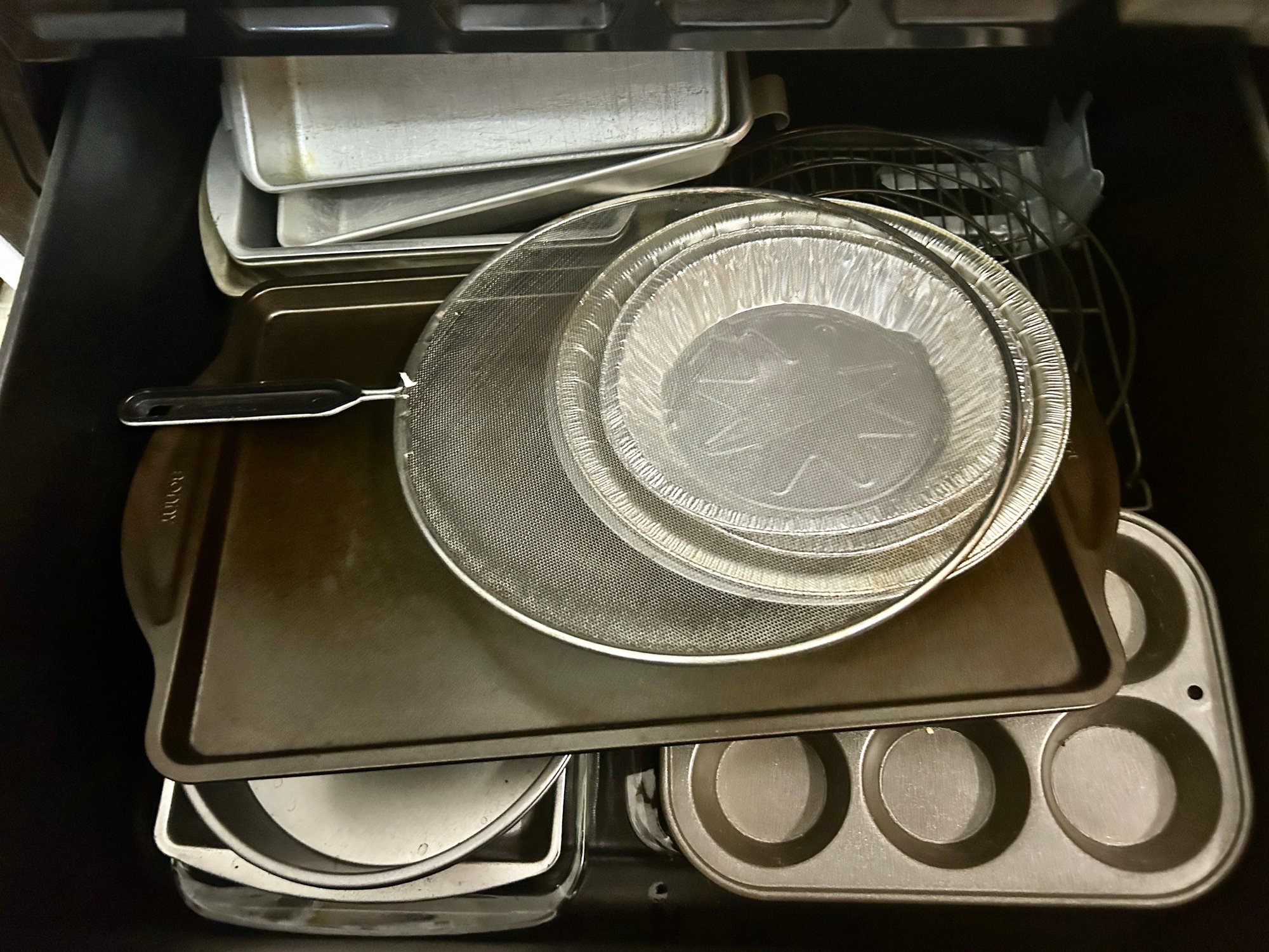 Oven Drawer Contents Baking Pans Casserole Dishes