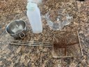 Quart Glass Measuring Cup And Rubbermaid Storage Container, Stainless Mixing Bowl & Fine Mesh Square Skimmer