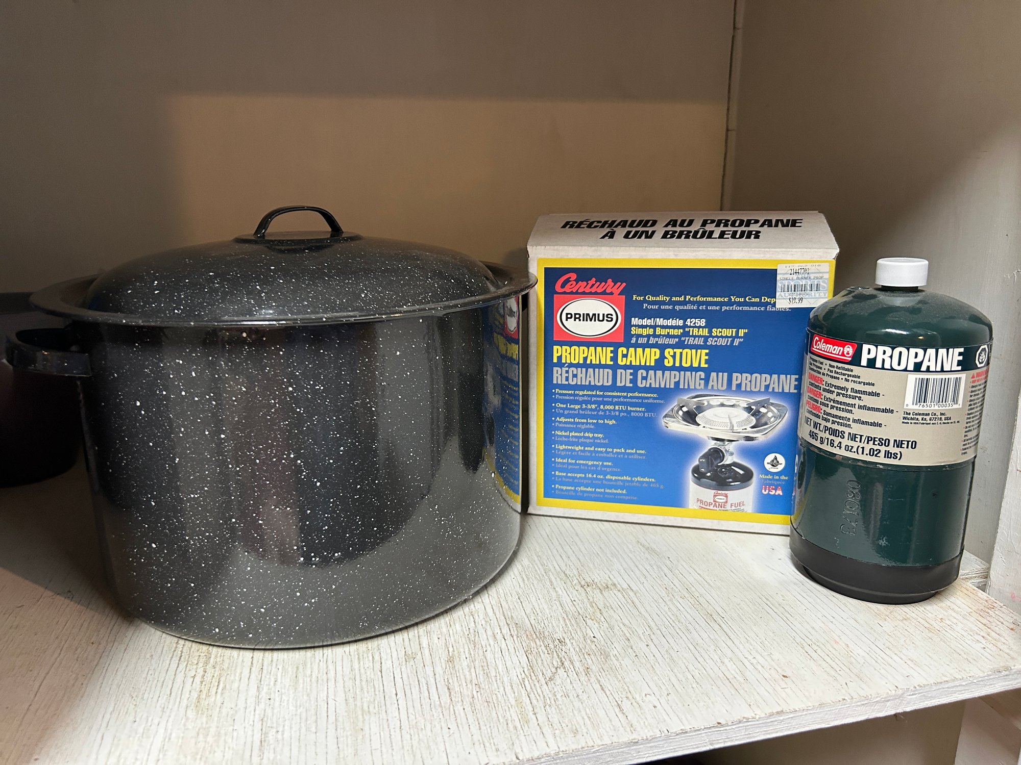 Primus Propane Camp Grill, Propane Tank And Large Stock Pot