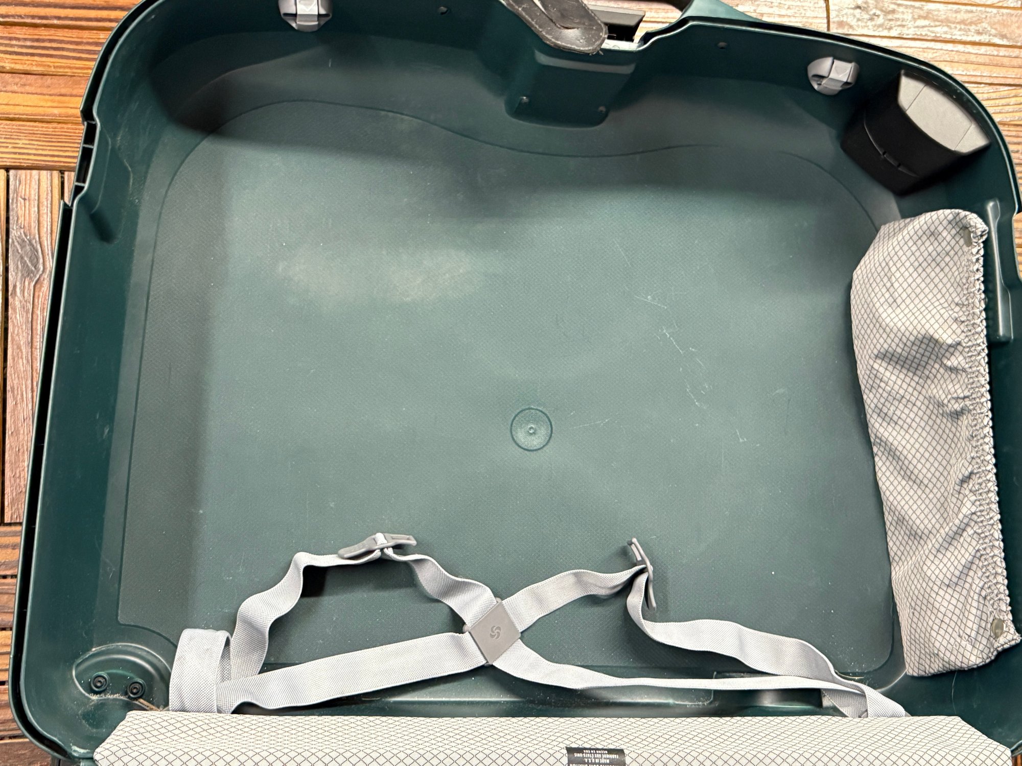 used for dive equipment, one wheel damaged but still functional. some outside surface scratches, interior looks nice, see photos, personal info blocked off on photos