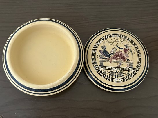 Terracotta Grecian Pottery Trinket Dish Covered Bowl