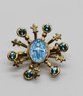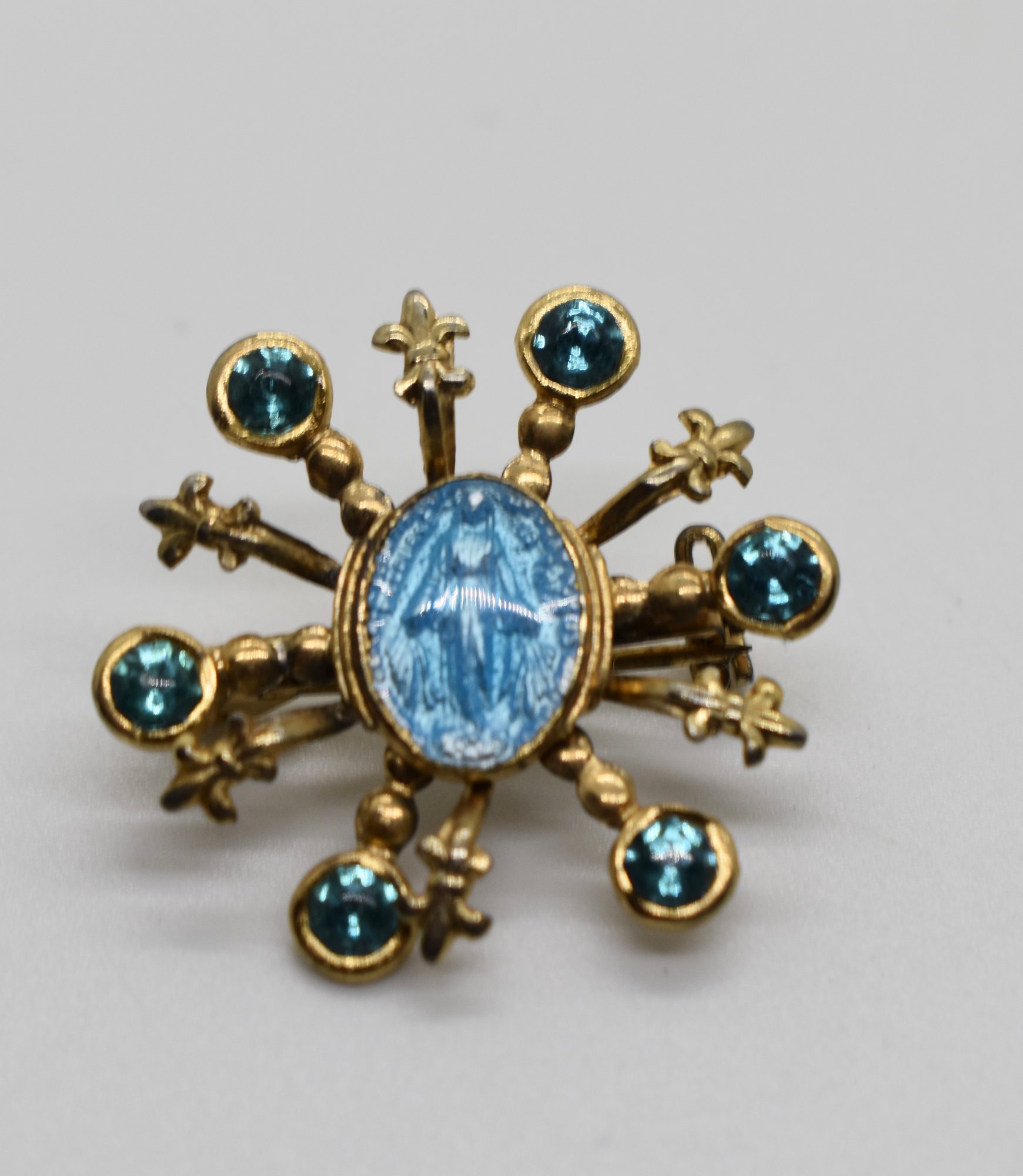 Vintage Blue Enamel Virgin Mary Silver Snowflake Christmas Brooch Pin #961