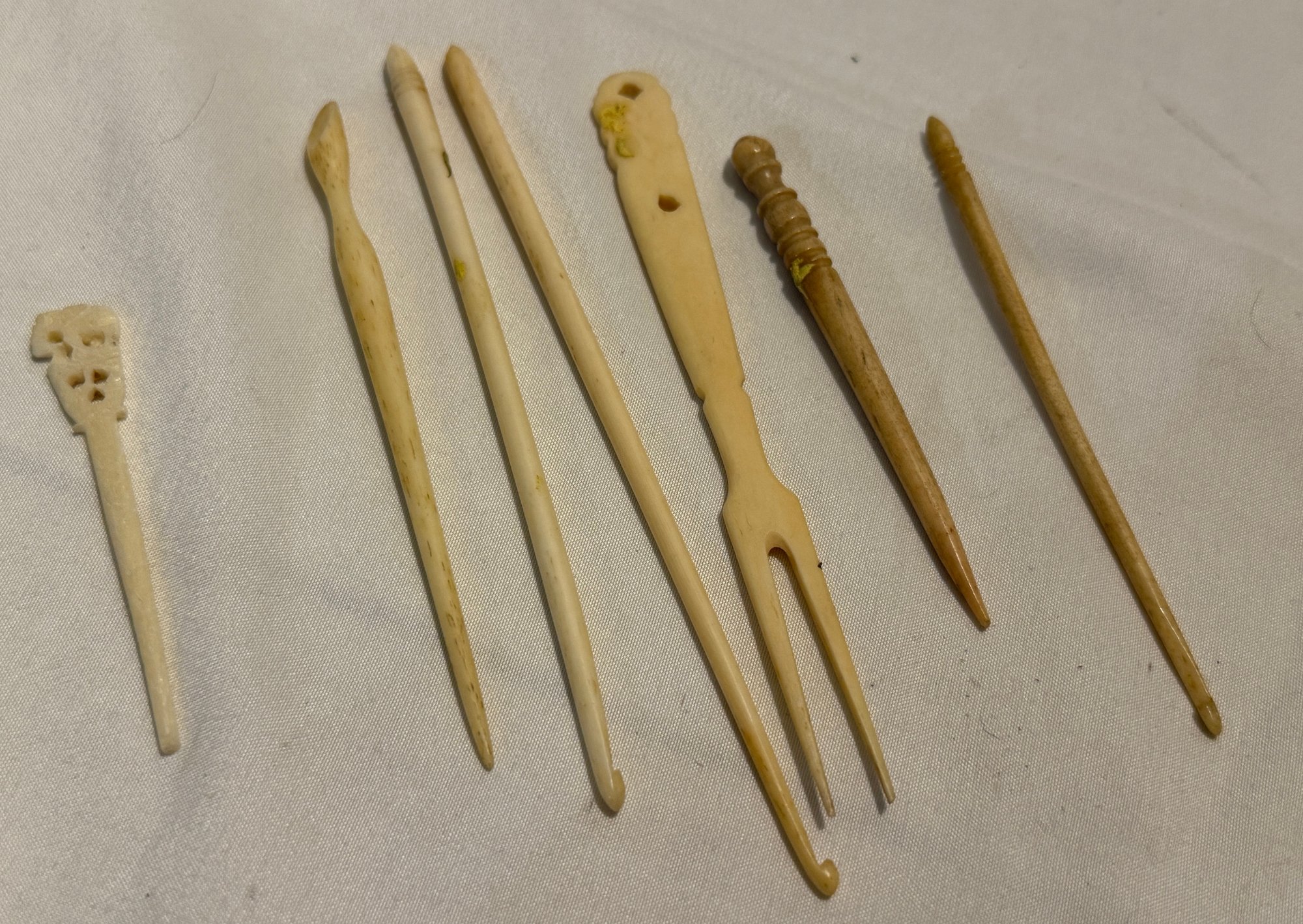 Vintage Bone Sewing Crocheting Tools Hooks #680