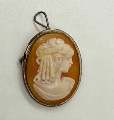 Vintage Cameo 800 Silver Pendant Pin Brooch #665