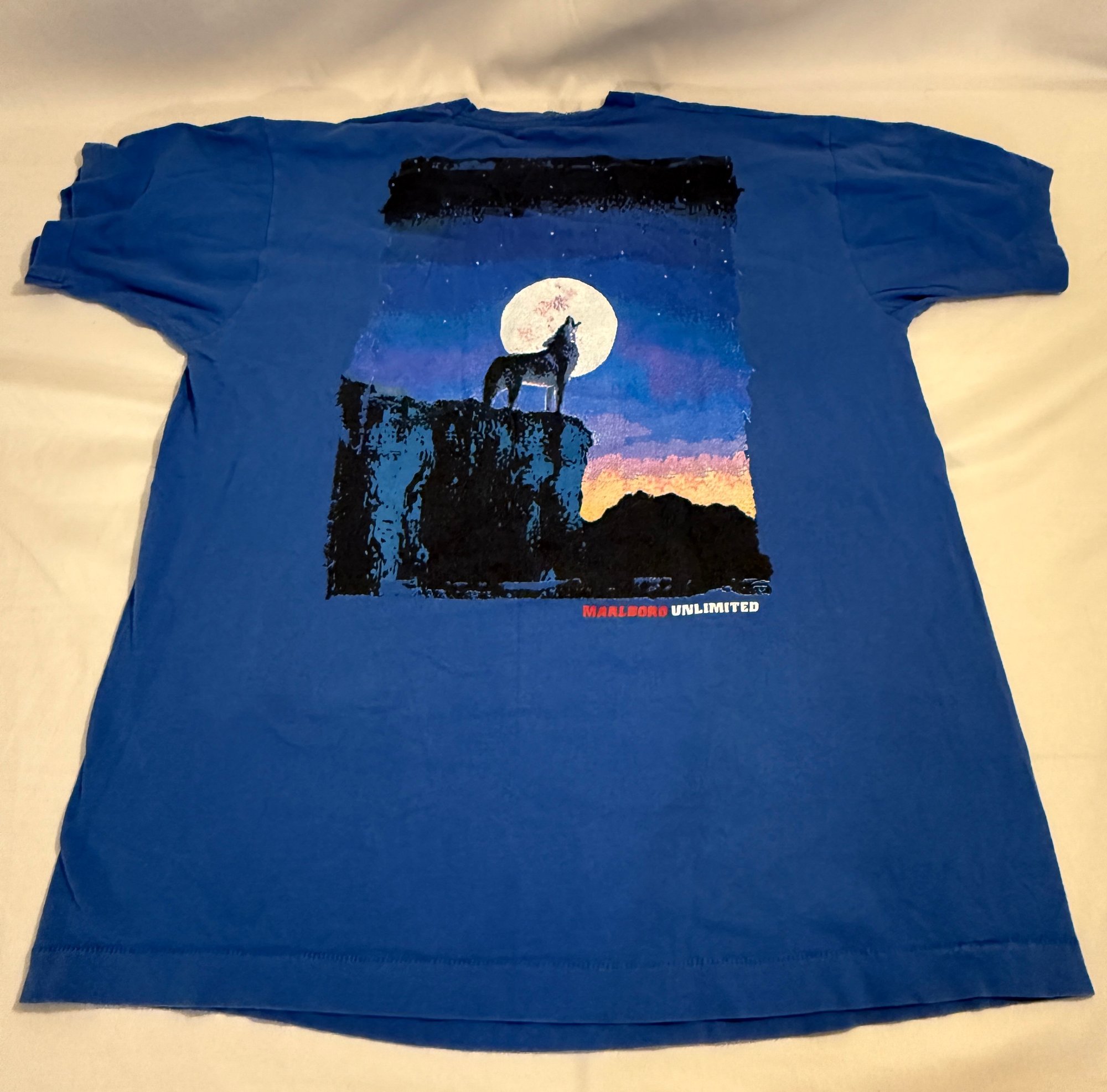 Vintage Marlboro Unlimited Wolf Howling At The Moon T-shirt One Size Fits All