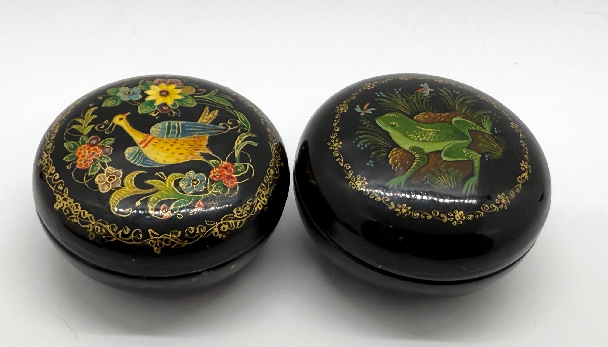 Vintage USSR Russian Small Round Handpainted Lacquer Trinket Boxes #704