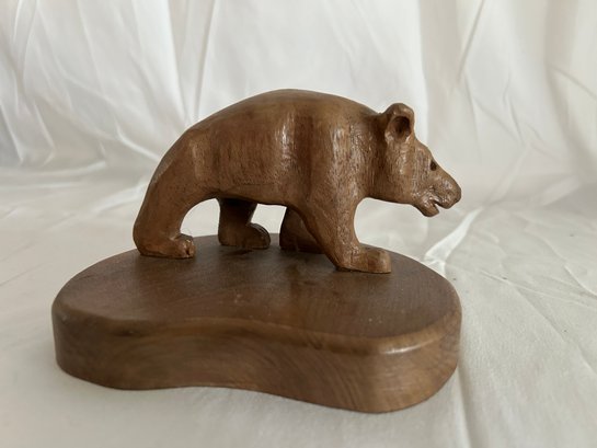 Wooden Hand Carved Bear Statue Sculpture
