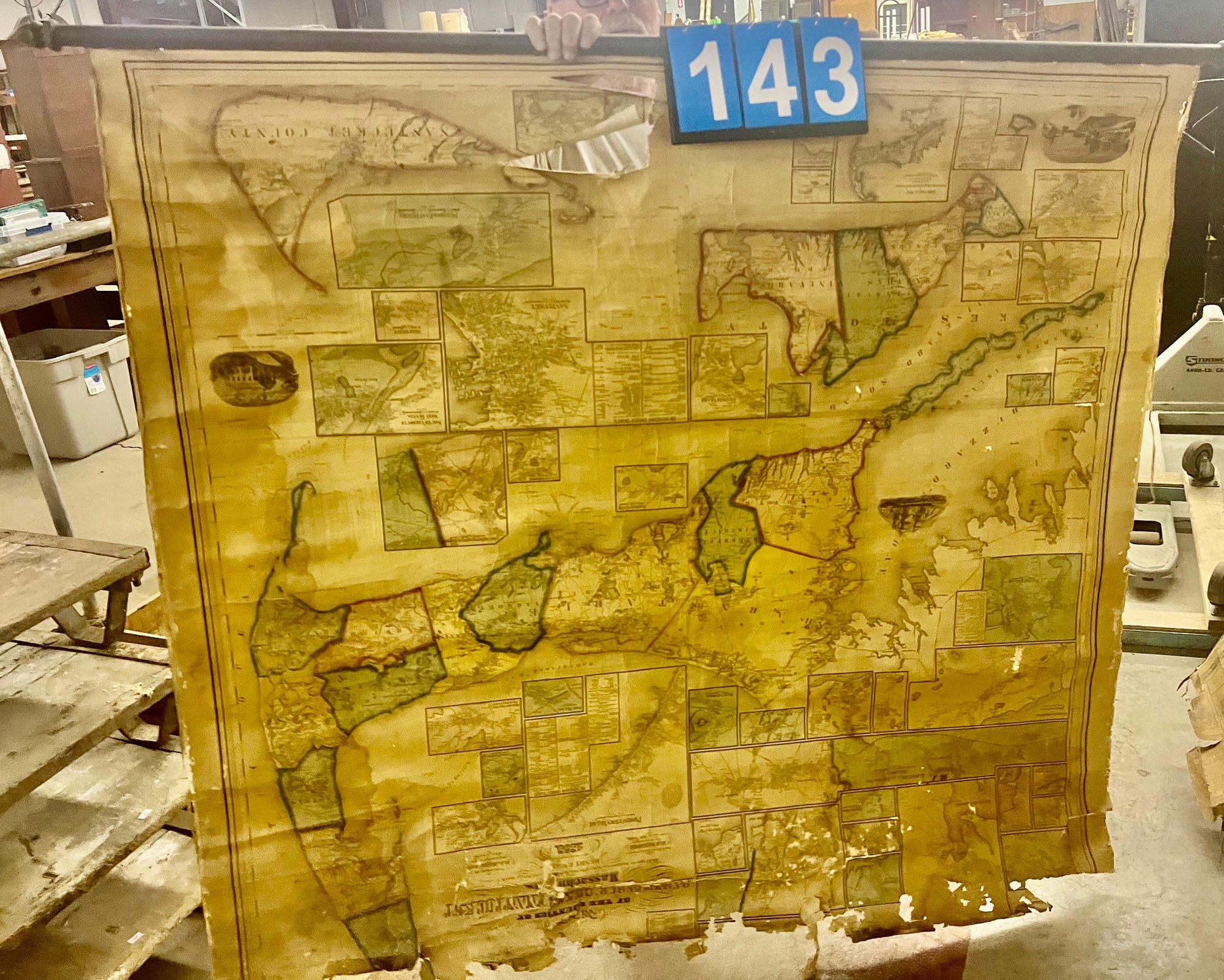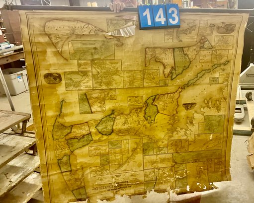 top of map is unattached from roll and some tearing, see photos