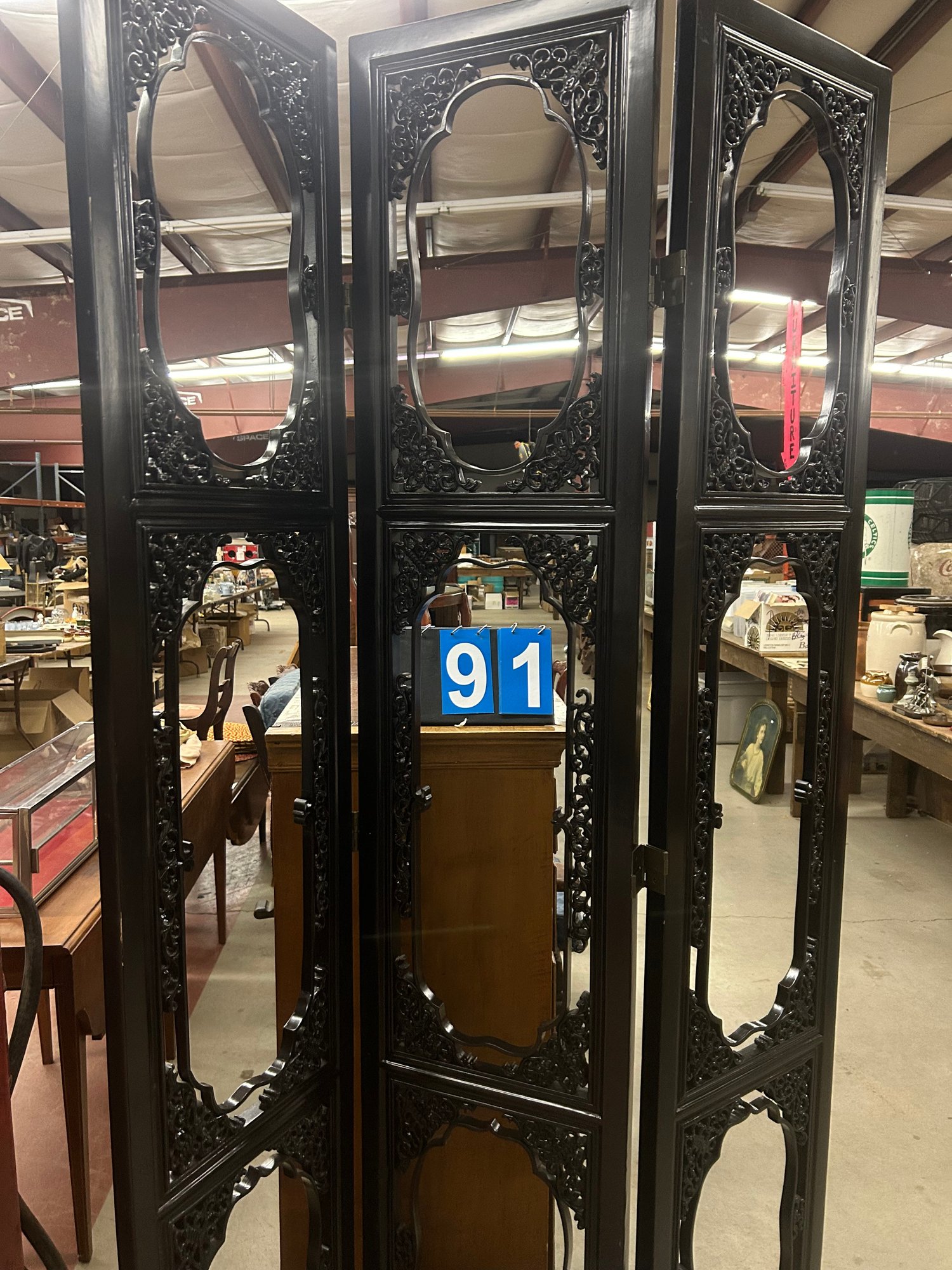 3 panel carved Oriental screen