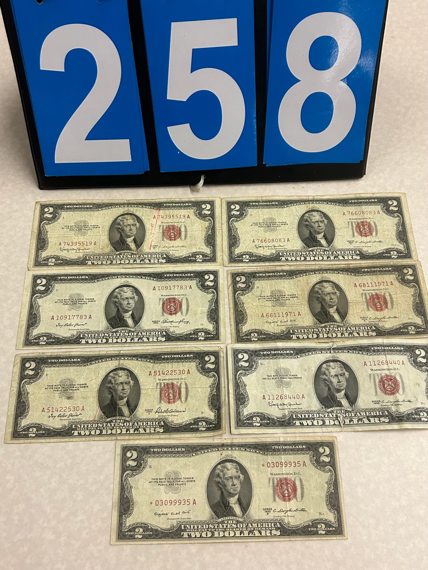 7 Red seal 1953 series (1 1963 series)2 dollar bills circulated