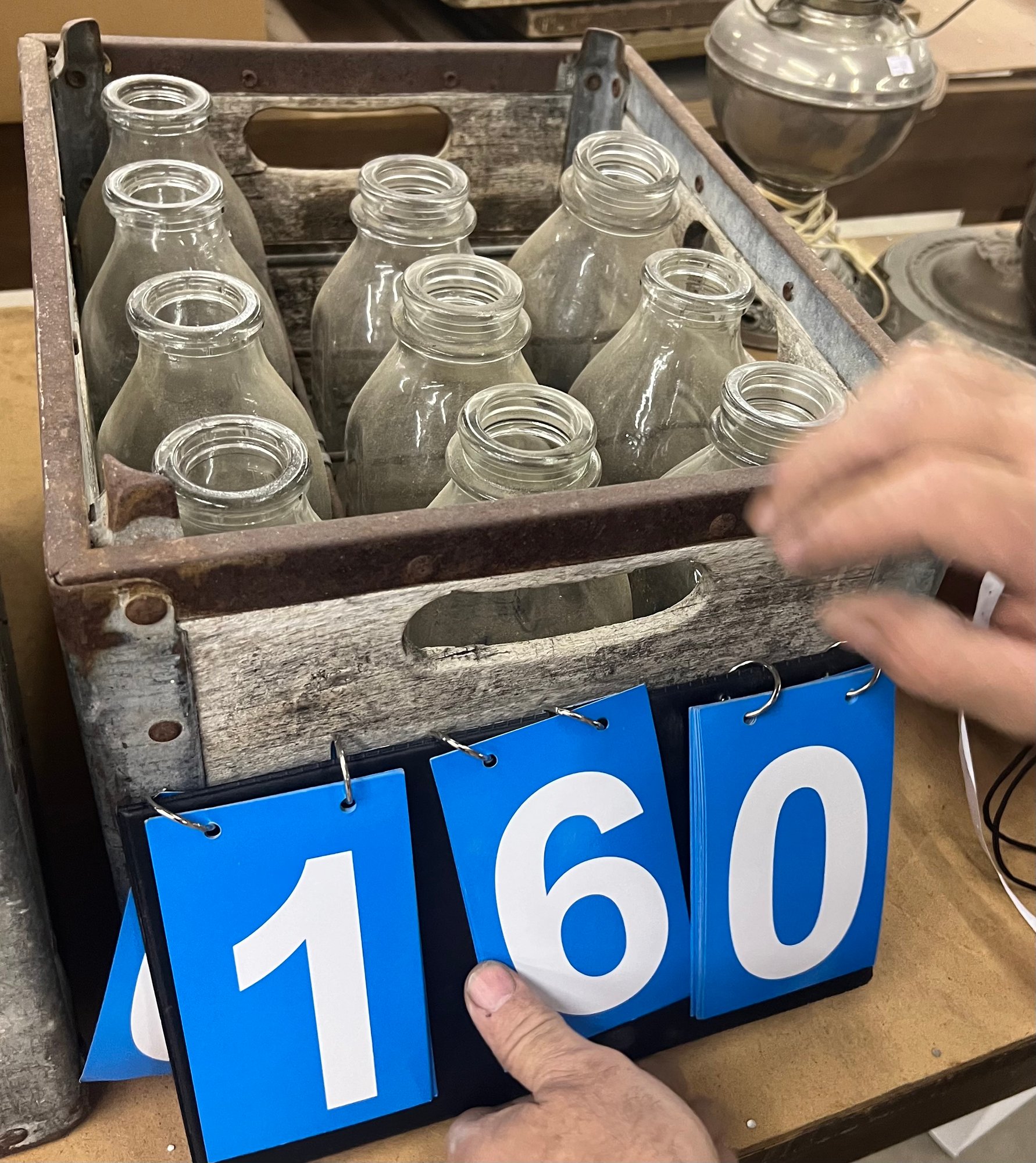 Antique Milk Bottle Crate With 11 Glass Bottles