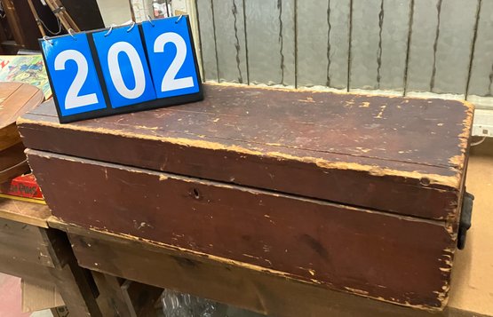 Antique Primitive Wooden Tool Box With Contents In Old Paint
