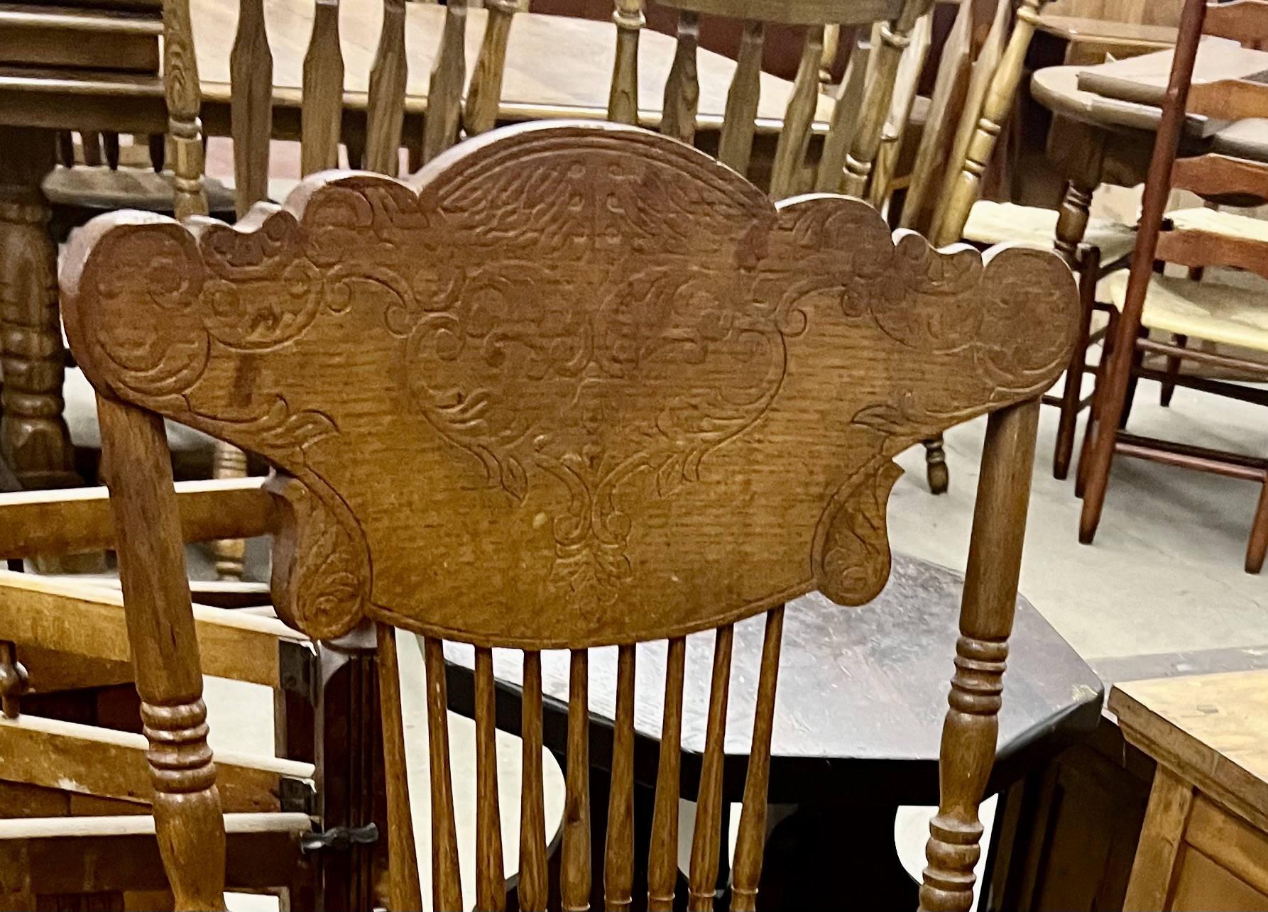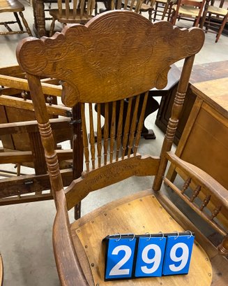 Antique Victorian Pressed Back Armchair With Mounted Wood Seat